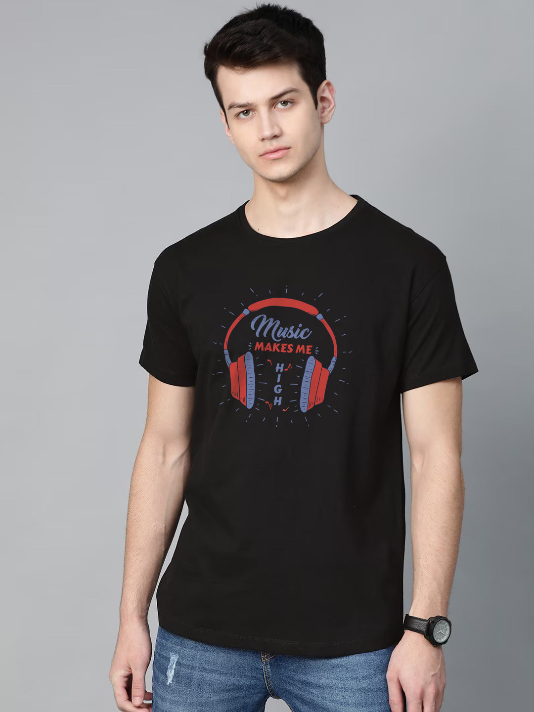 Music Makes Me Happy Half Sleeve T-Shirt