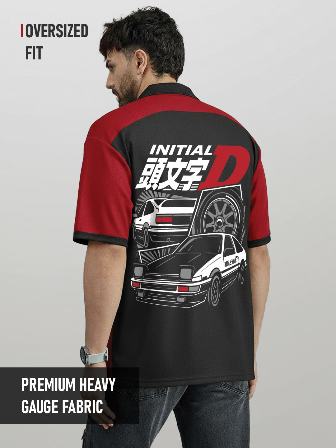 Polo - Initial D Oversized Polo T-Shirt - Red & Black