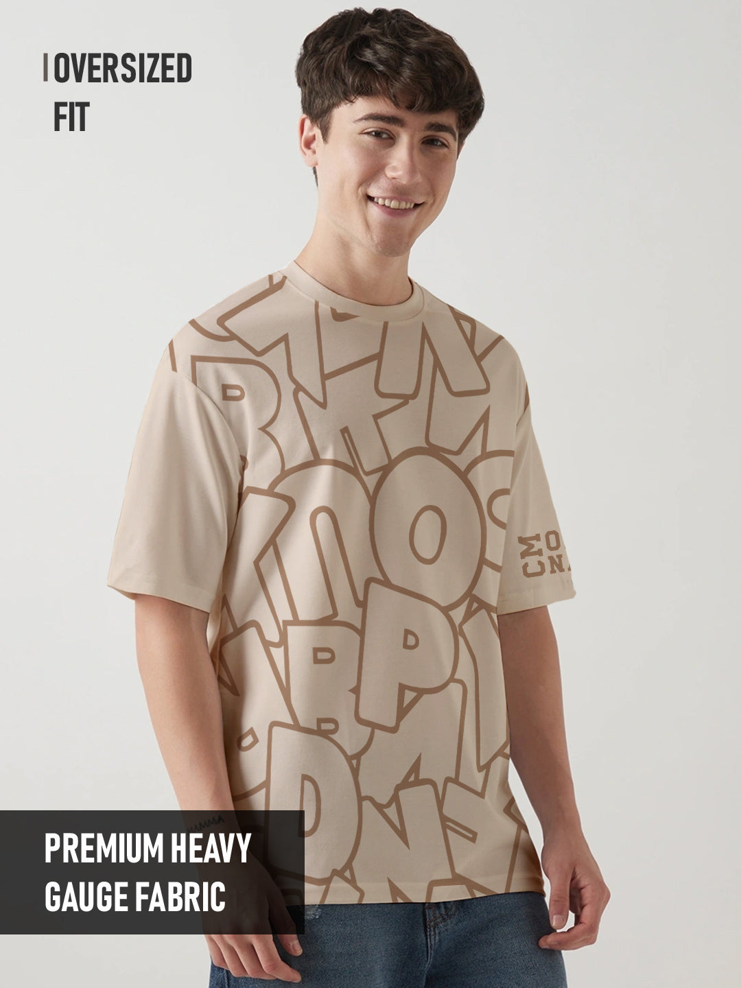 Alpha Pattern Graphic Printed Oversized T-Shirt - Cream