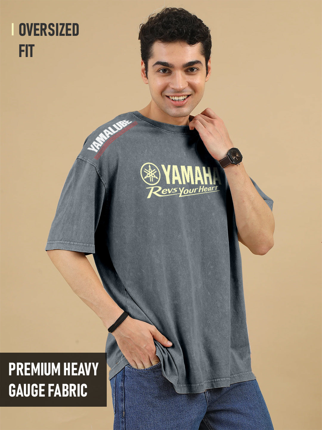 Yamaha Printed Acid Wash Oversized T-Shirt - Steel Grey