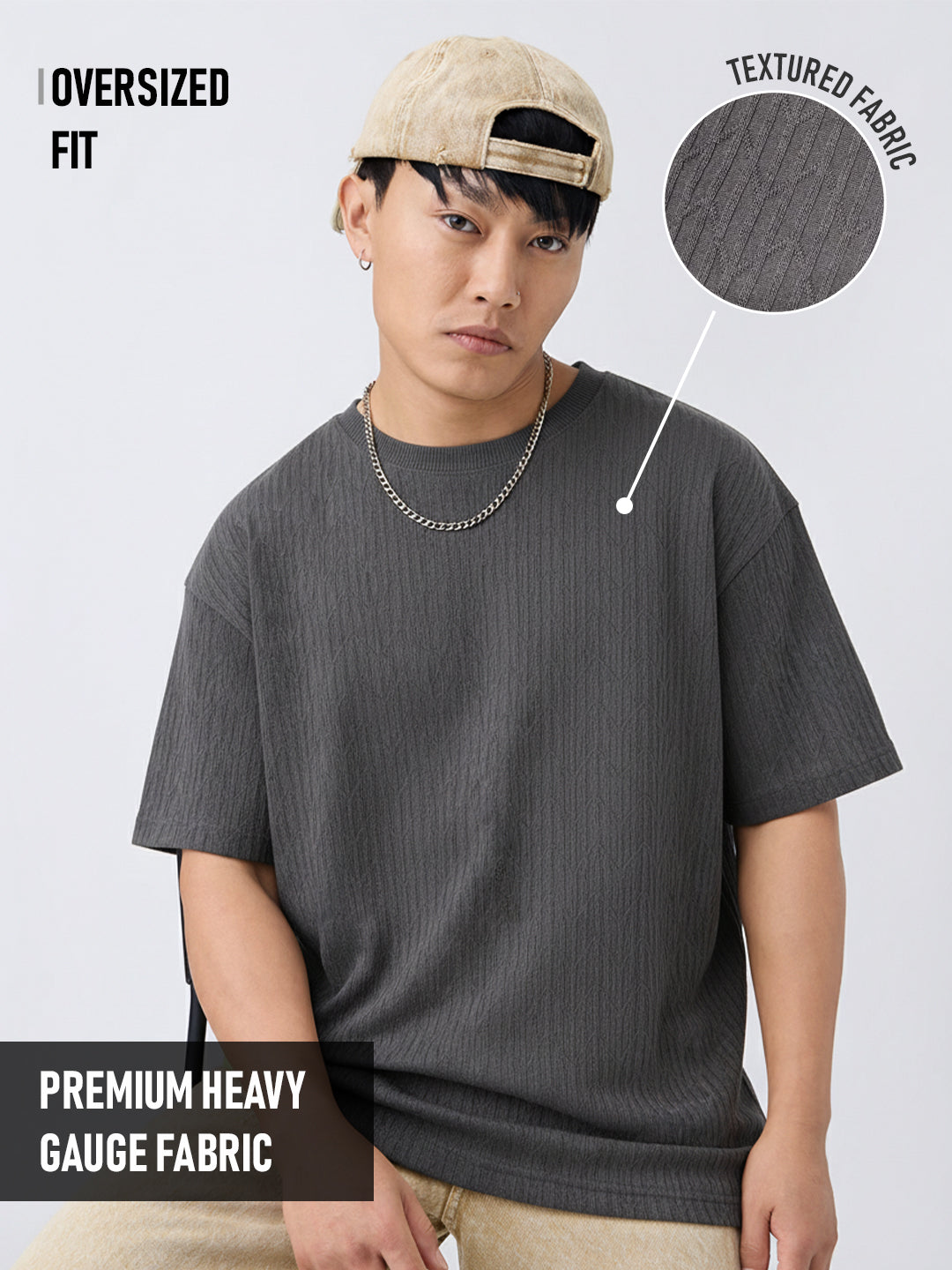 Shadow Weave Oversized T-Shirt - Steel Grey