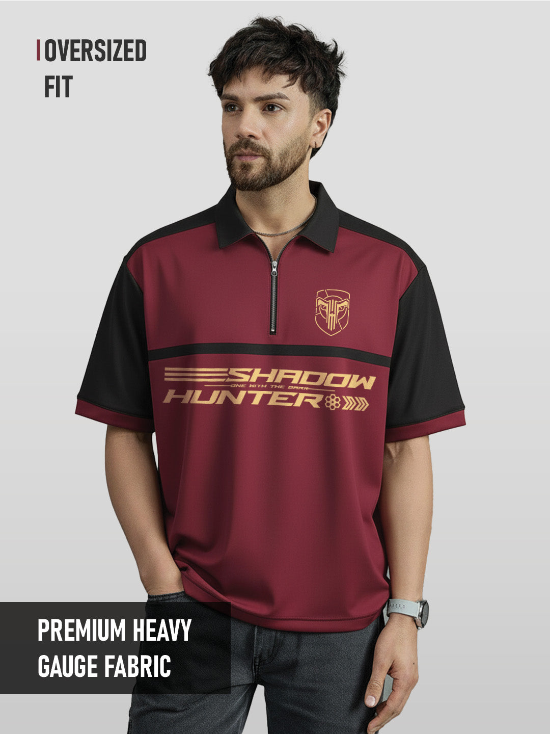 Polo - Shadow Hunter Oversized Polo T-Shirt - Maroon & Black