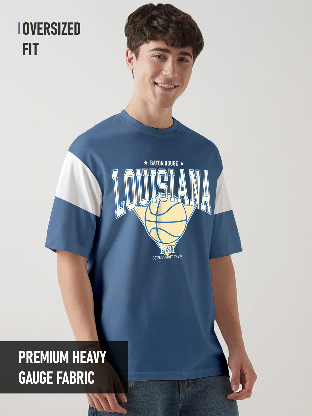 Louisiana Oversized T-Shirt-Denim Blue & white