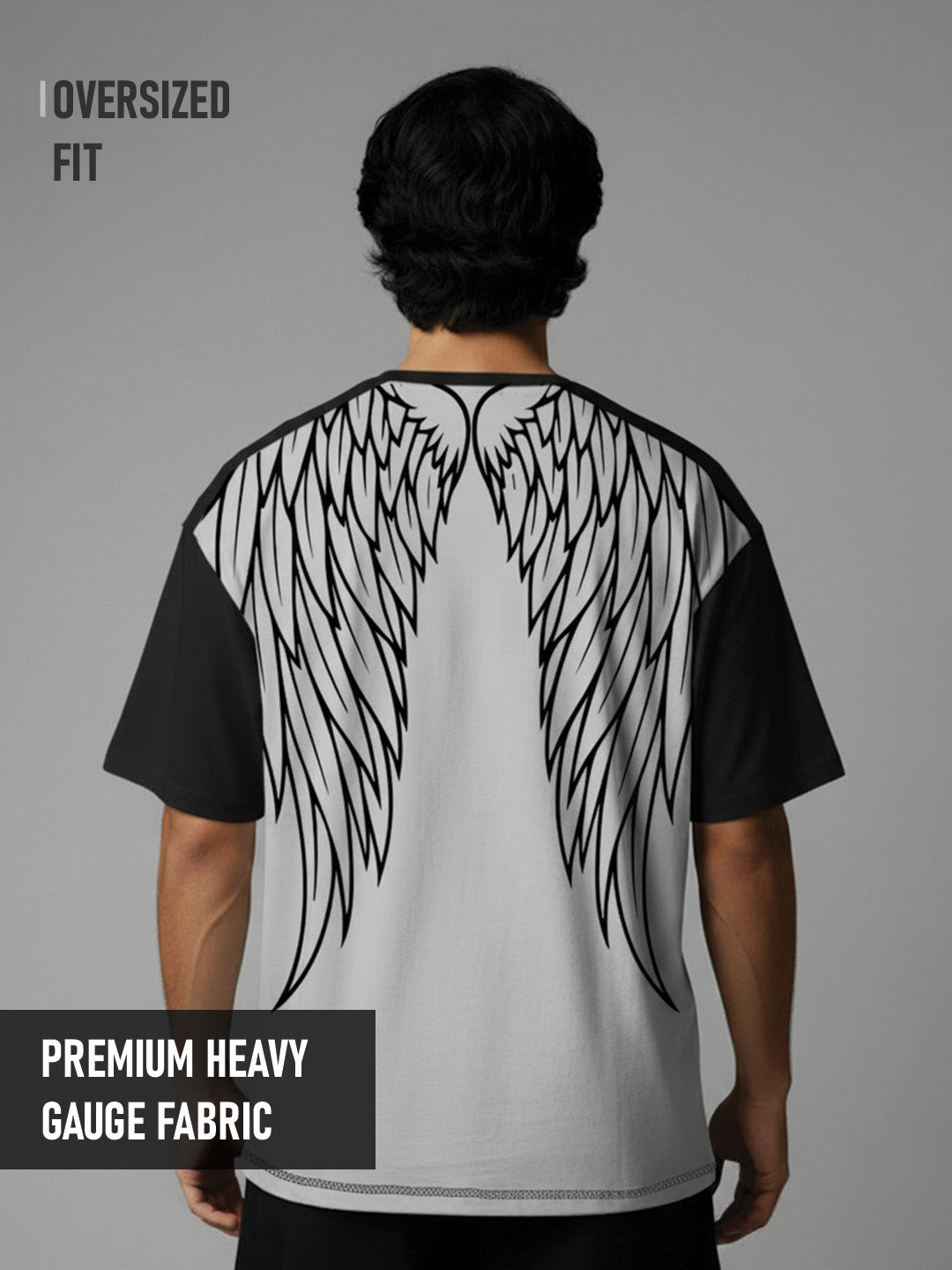 Fallen Angel Oversized T-Shirt - Light Grey & Black