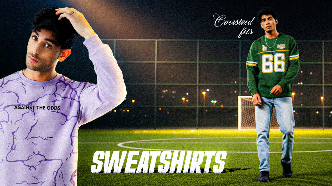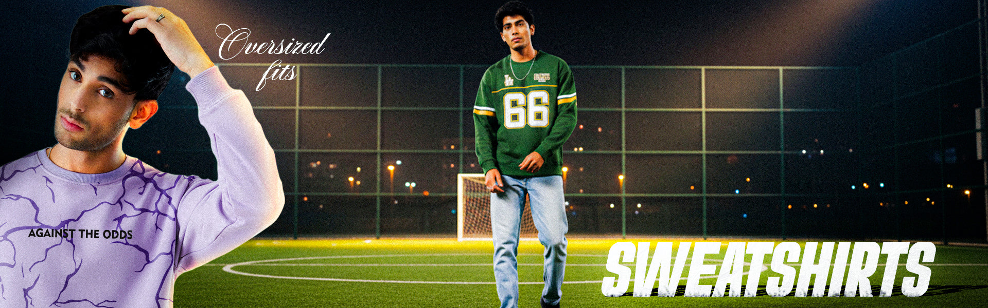 We offer oversized sweatshirts, relaxed fit sweatshirts, regular fit sweatshirts, solid sweatshirts, and cotton washed sweatshirts for men.