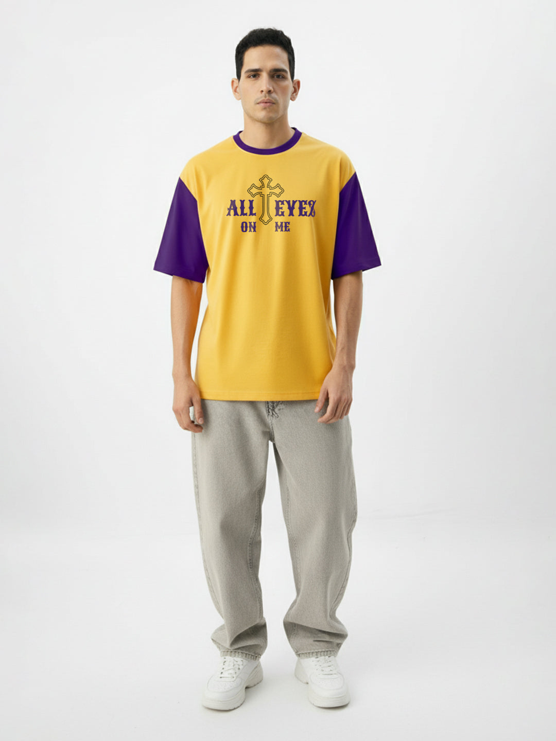 All Eyes on Me Oversized T-Shirt- Yellow & Purple