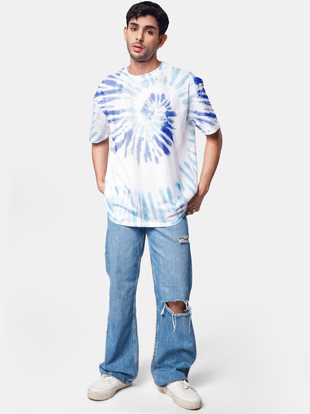 Plain Blue and Blue Spiral Oversized T-Shirt - Tiedye