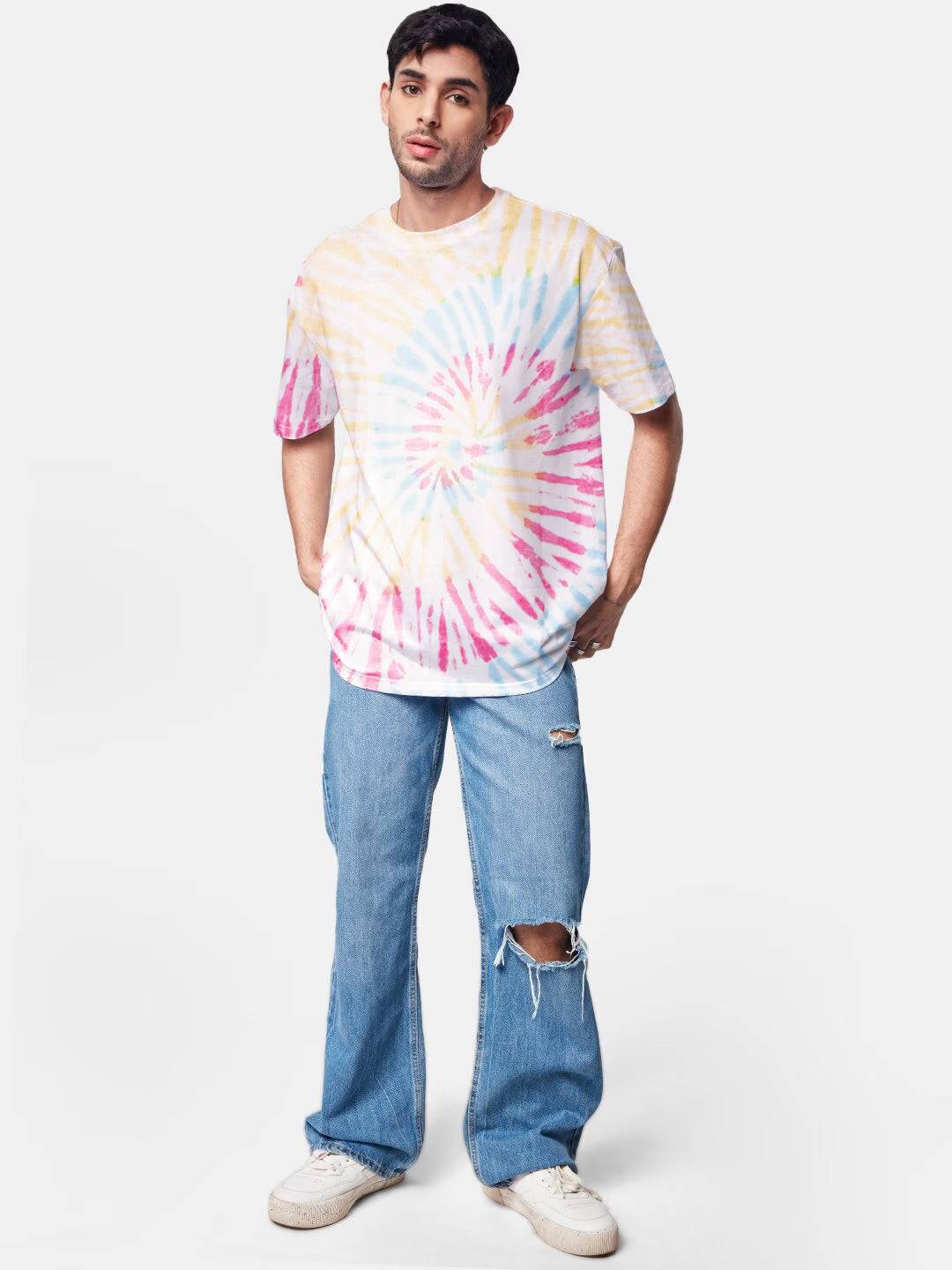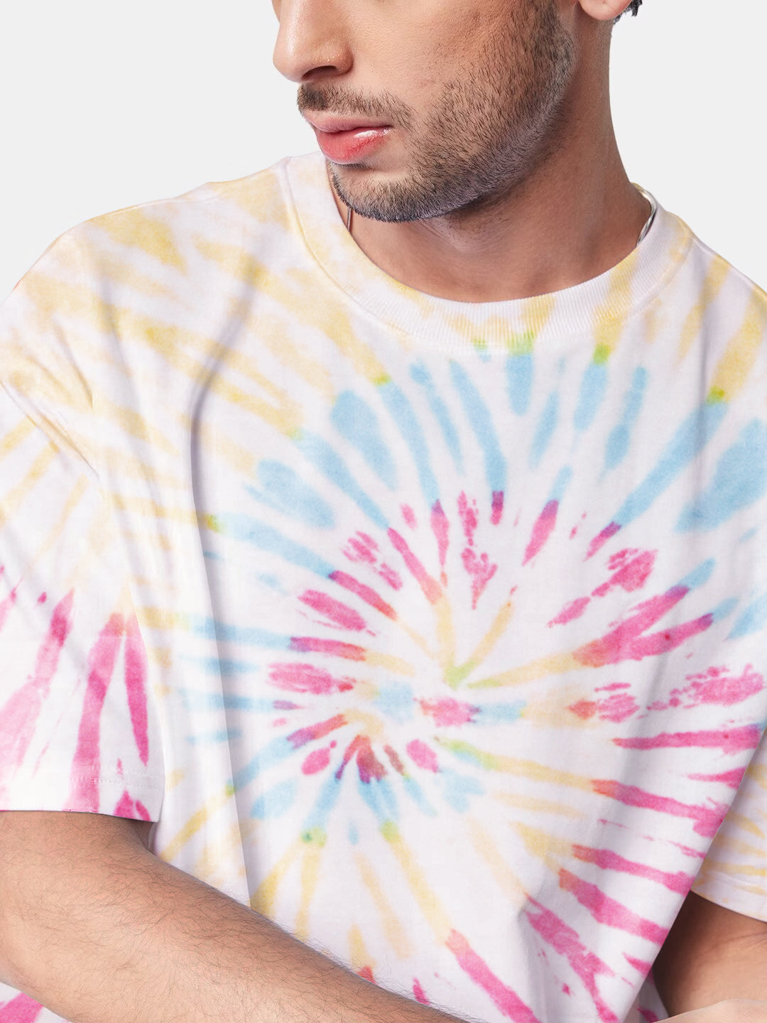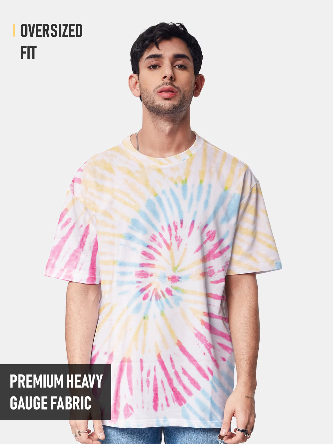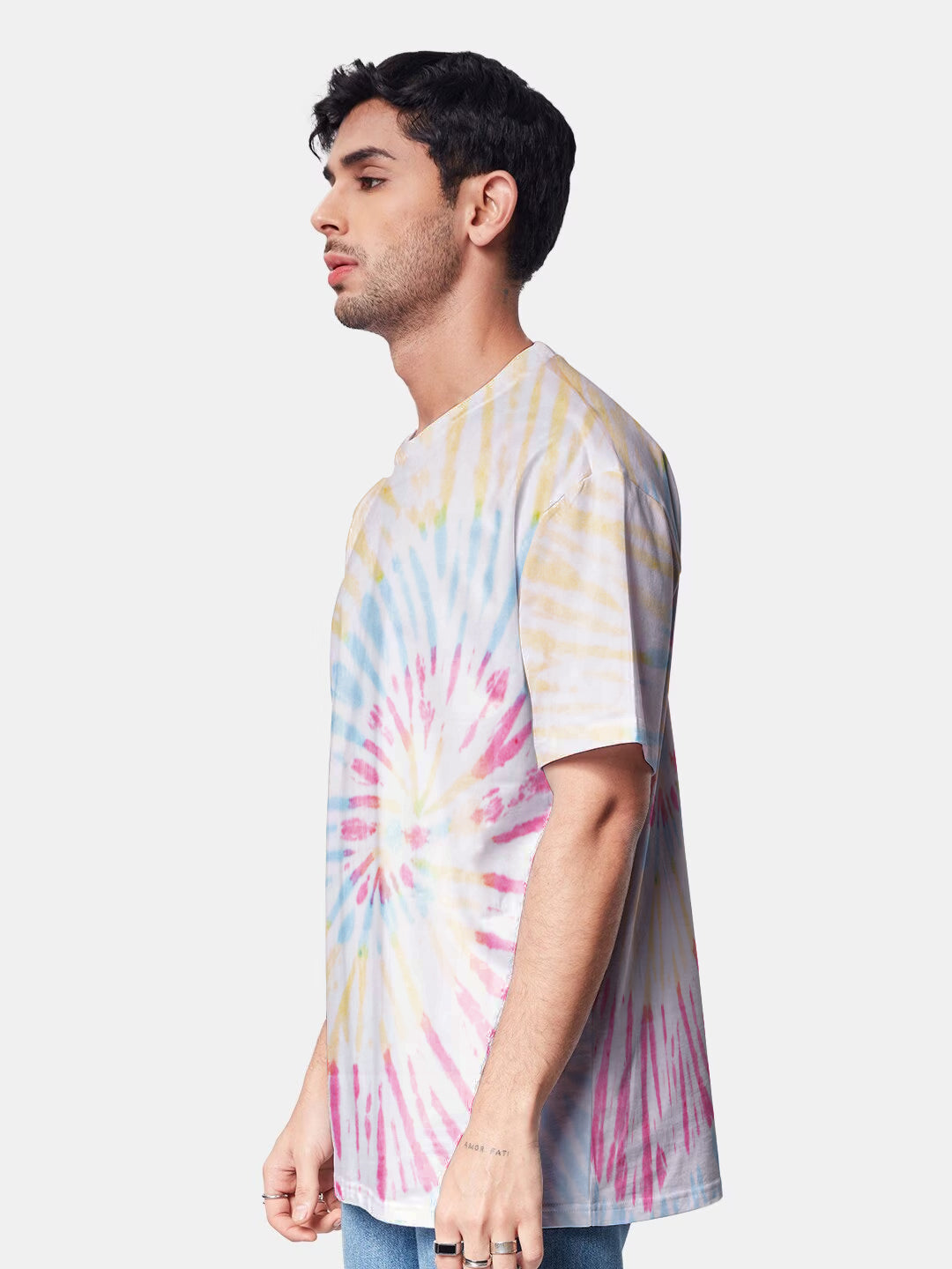 Plain Blue Pink Spiral Oversized T-Shirt - Tiedye