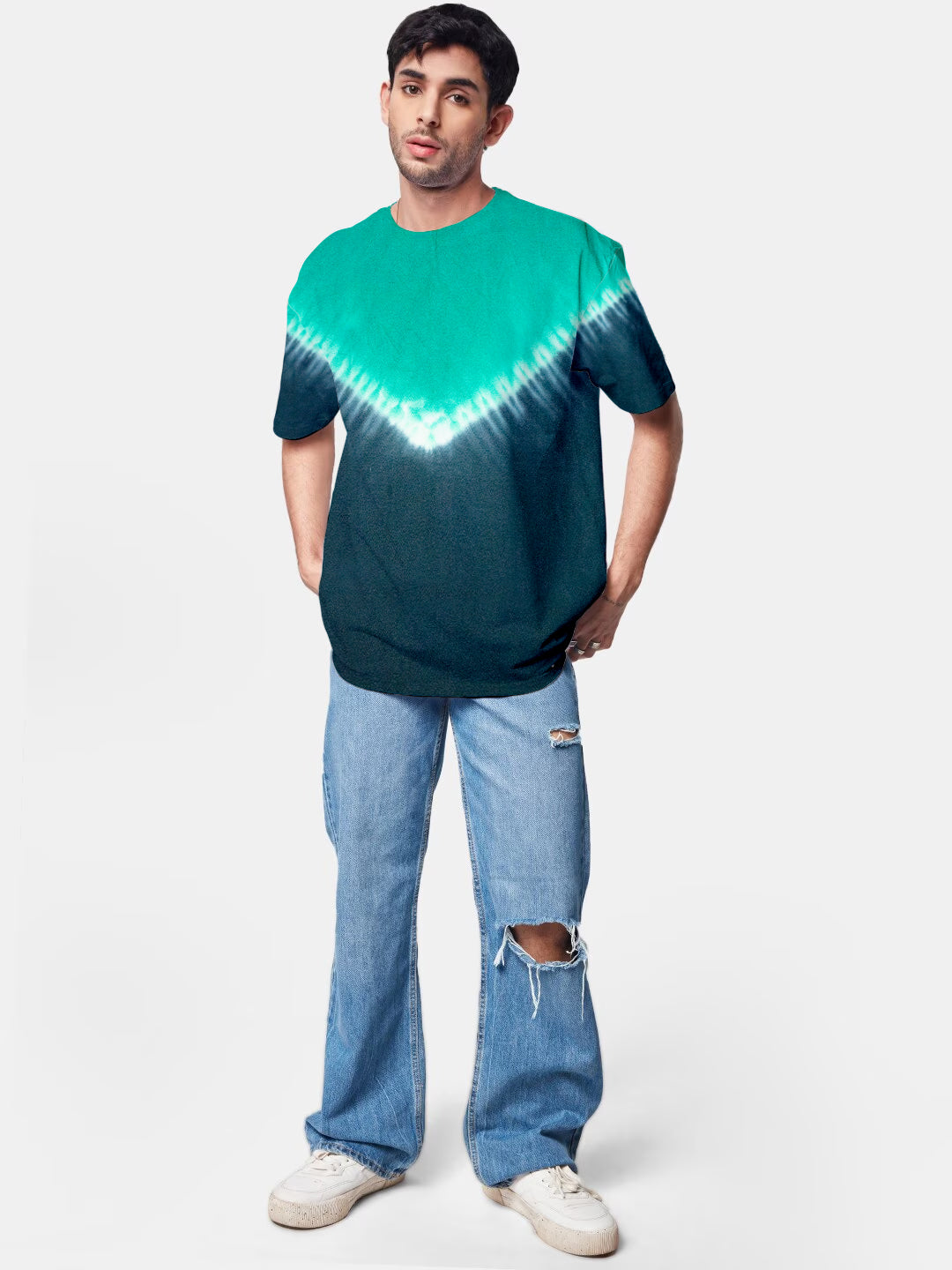 Plain Dark Cyan Oversized T-Shirt - Tiedye