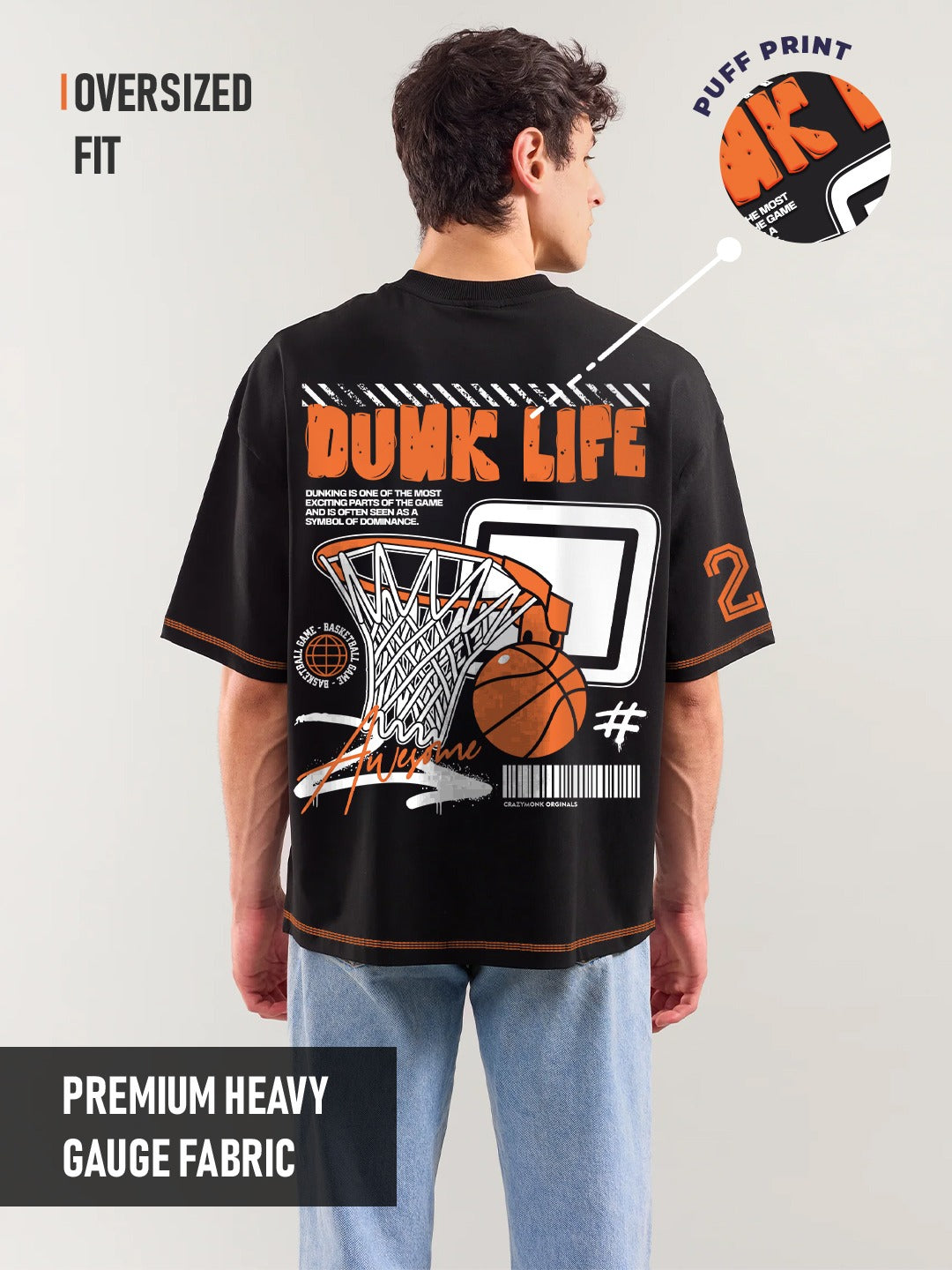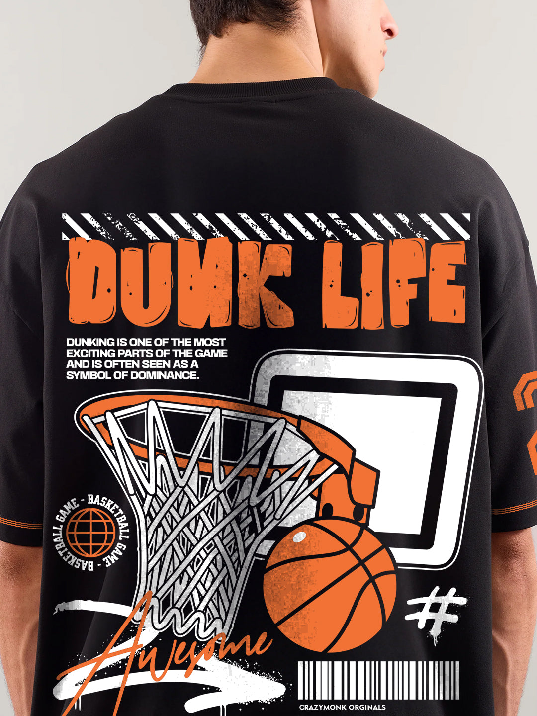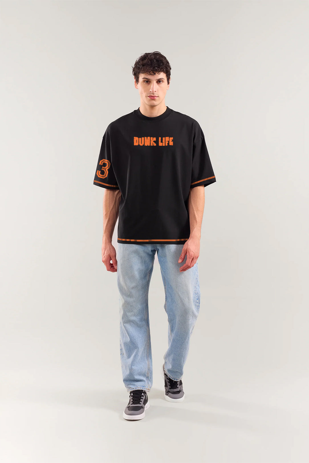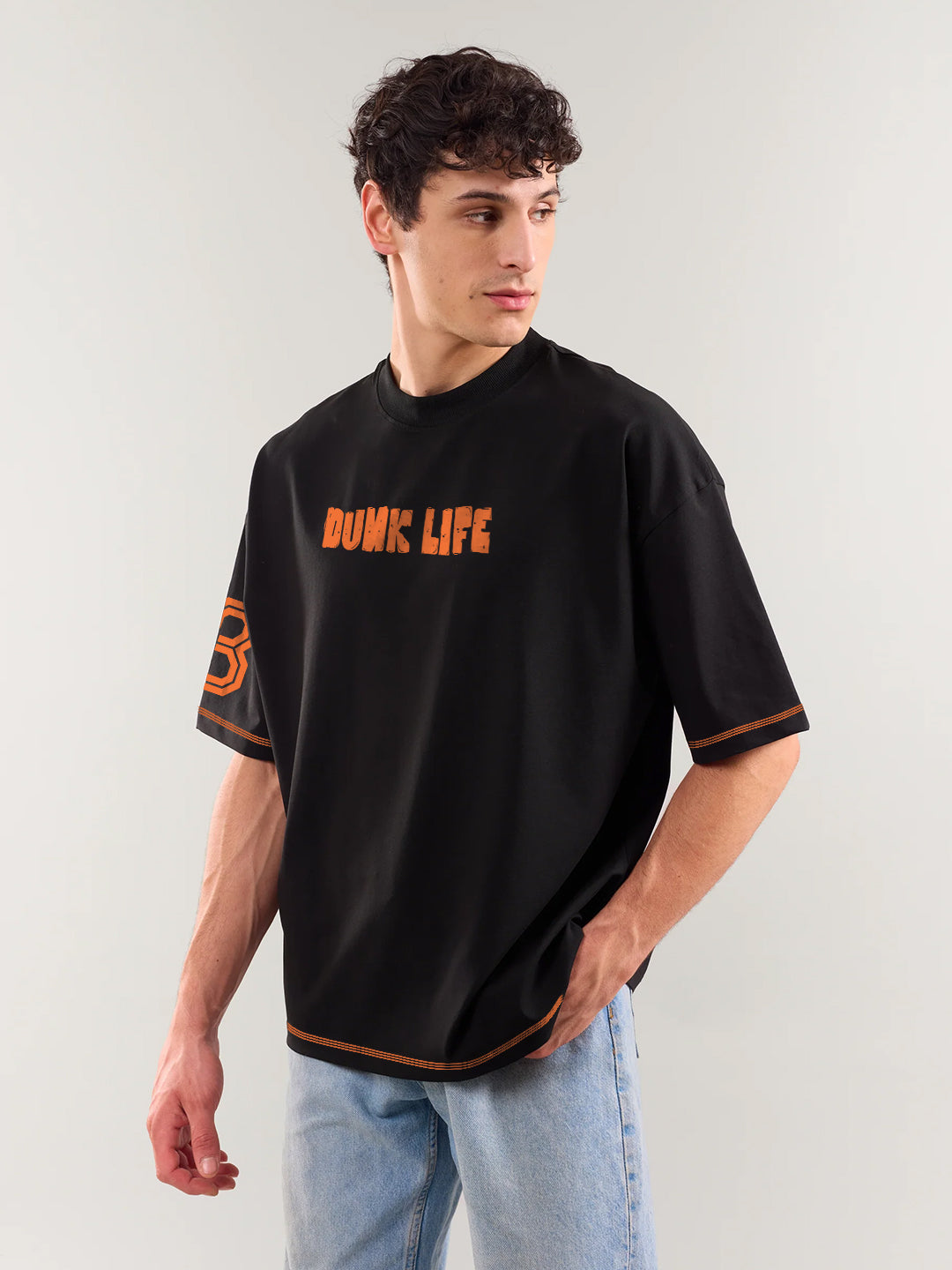Dunk Life Graphic Printed Oversized T-Shirt - Black