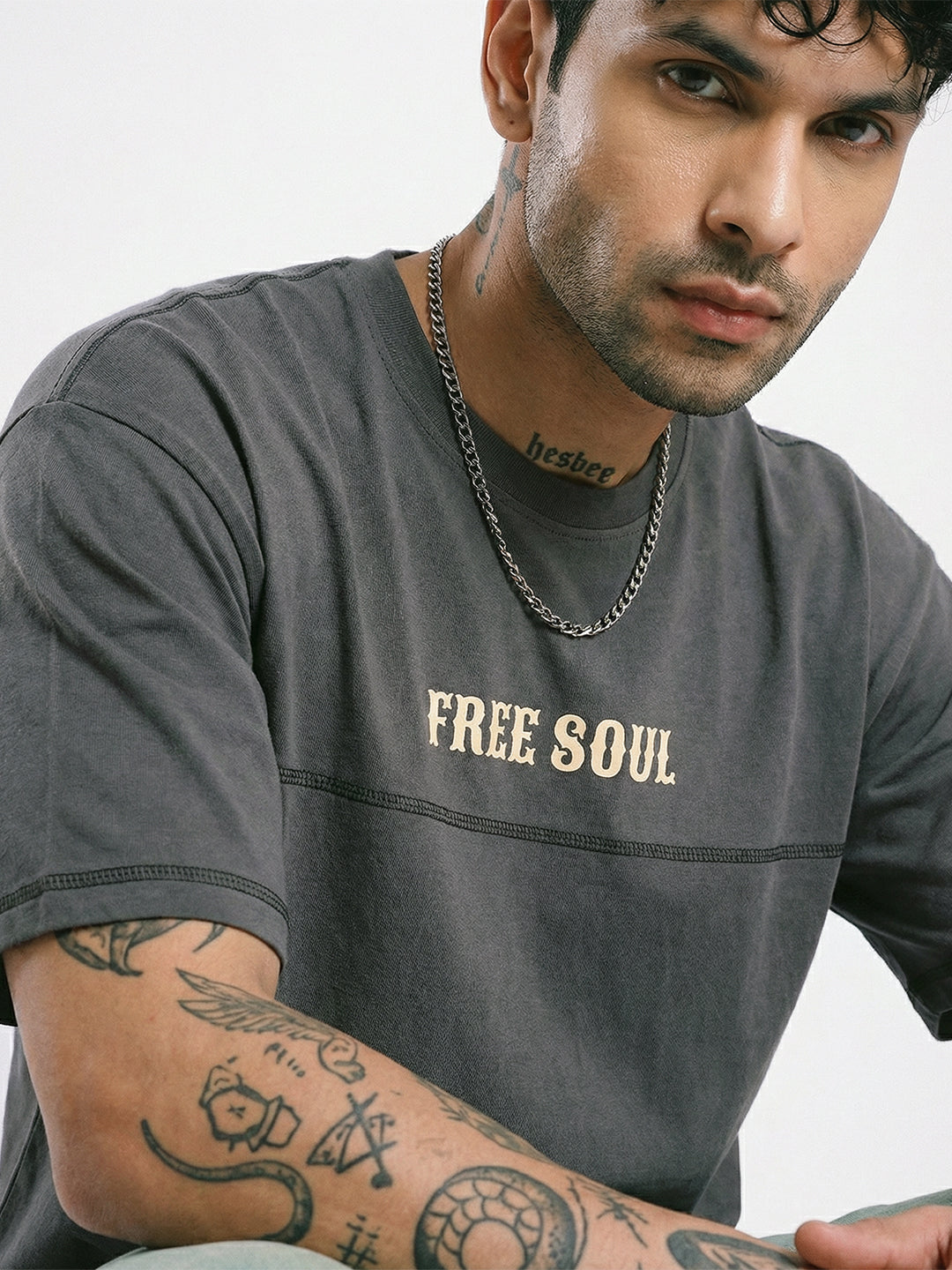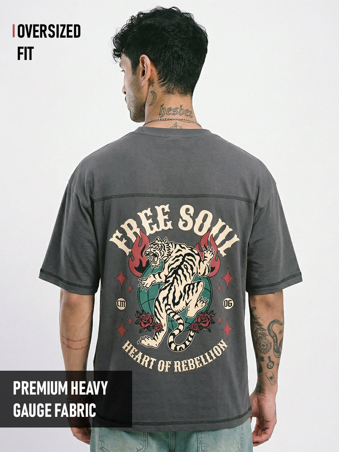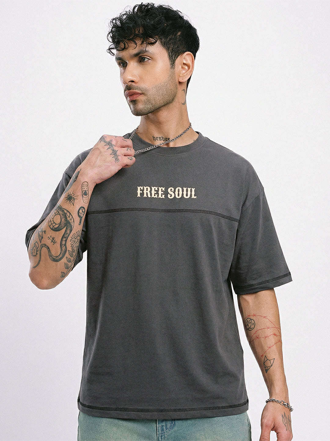 Free Soul Graphic Printed Oversized T-Shirt 5 Thread - Steel Grey