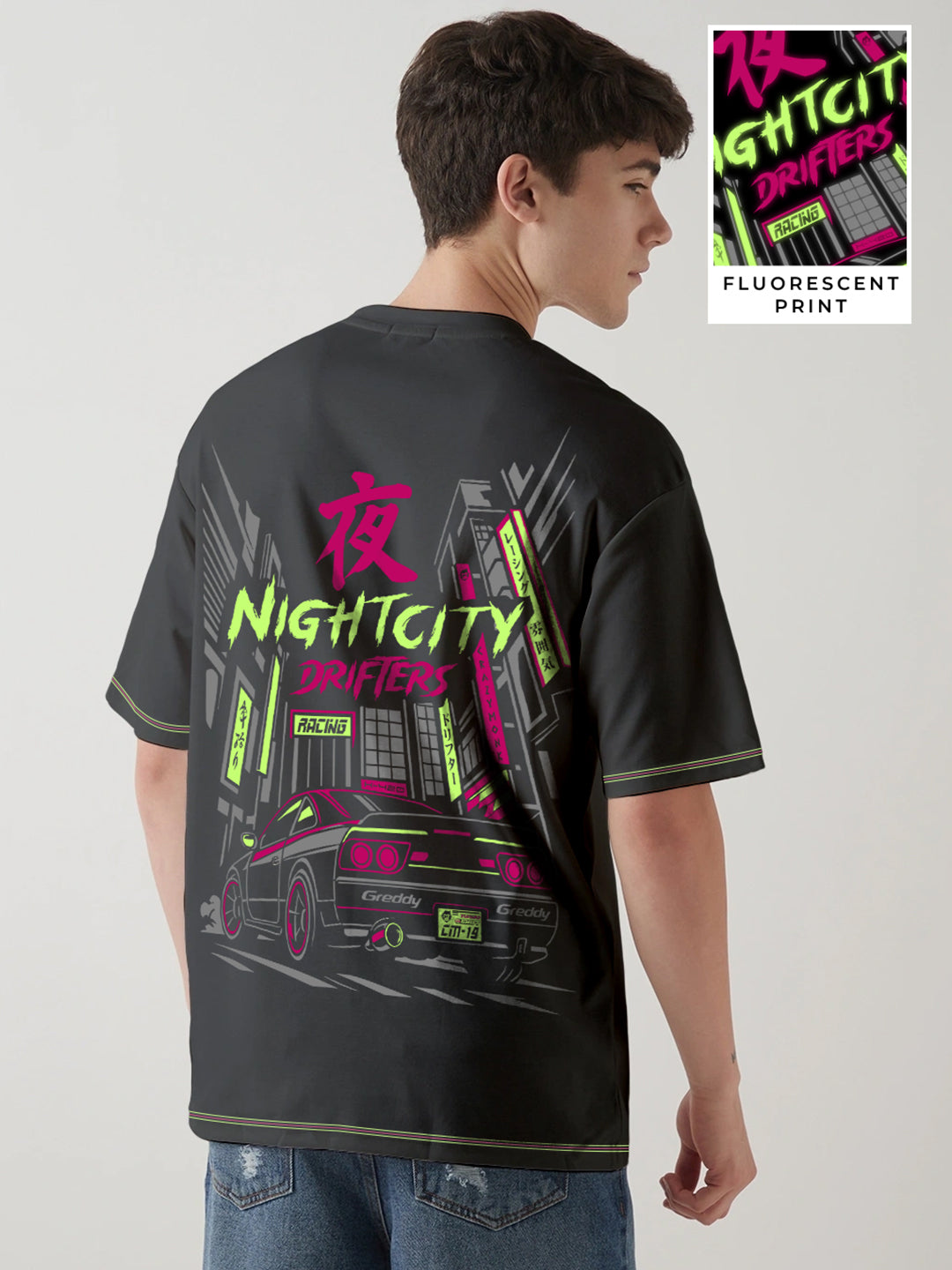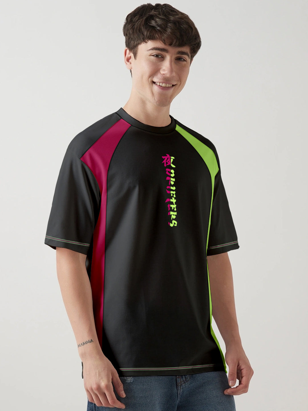 Night Drifters Oversized T-Shirt - Black, Red & Green