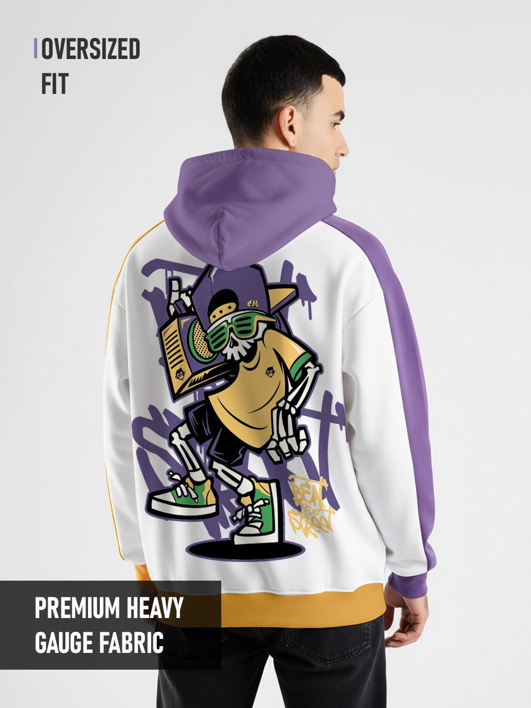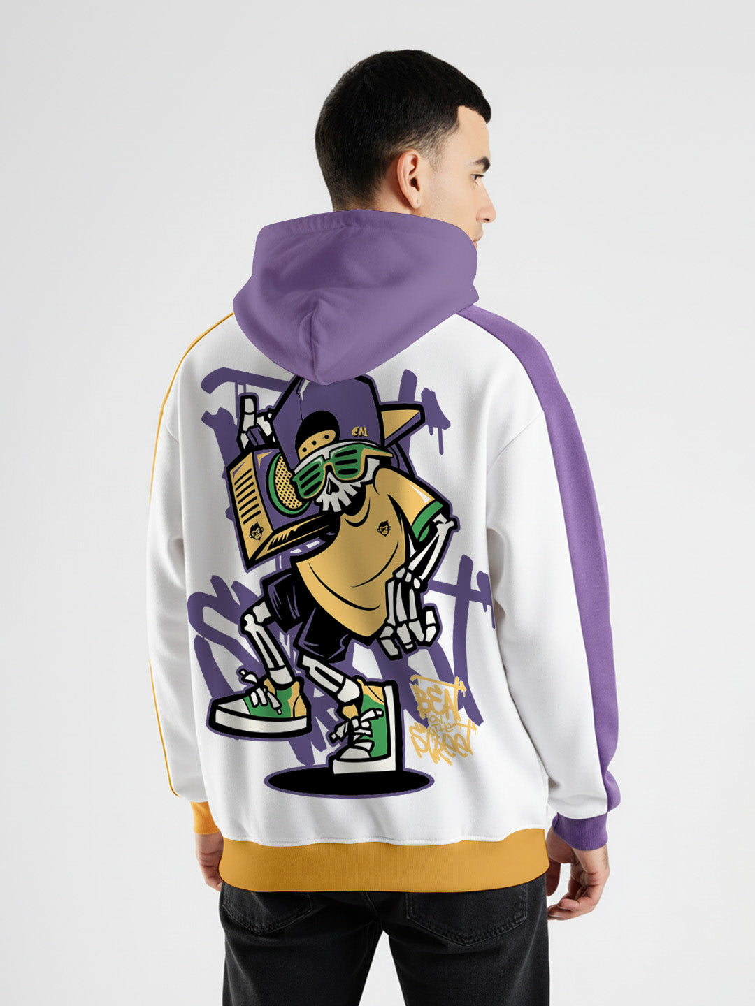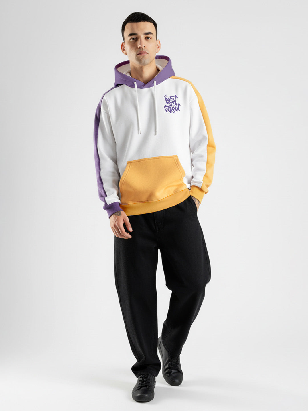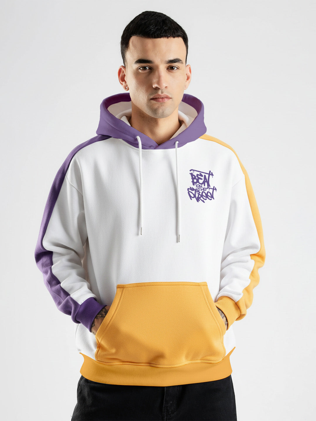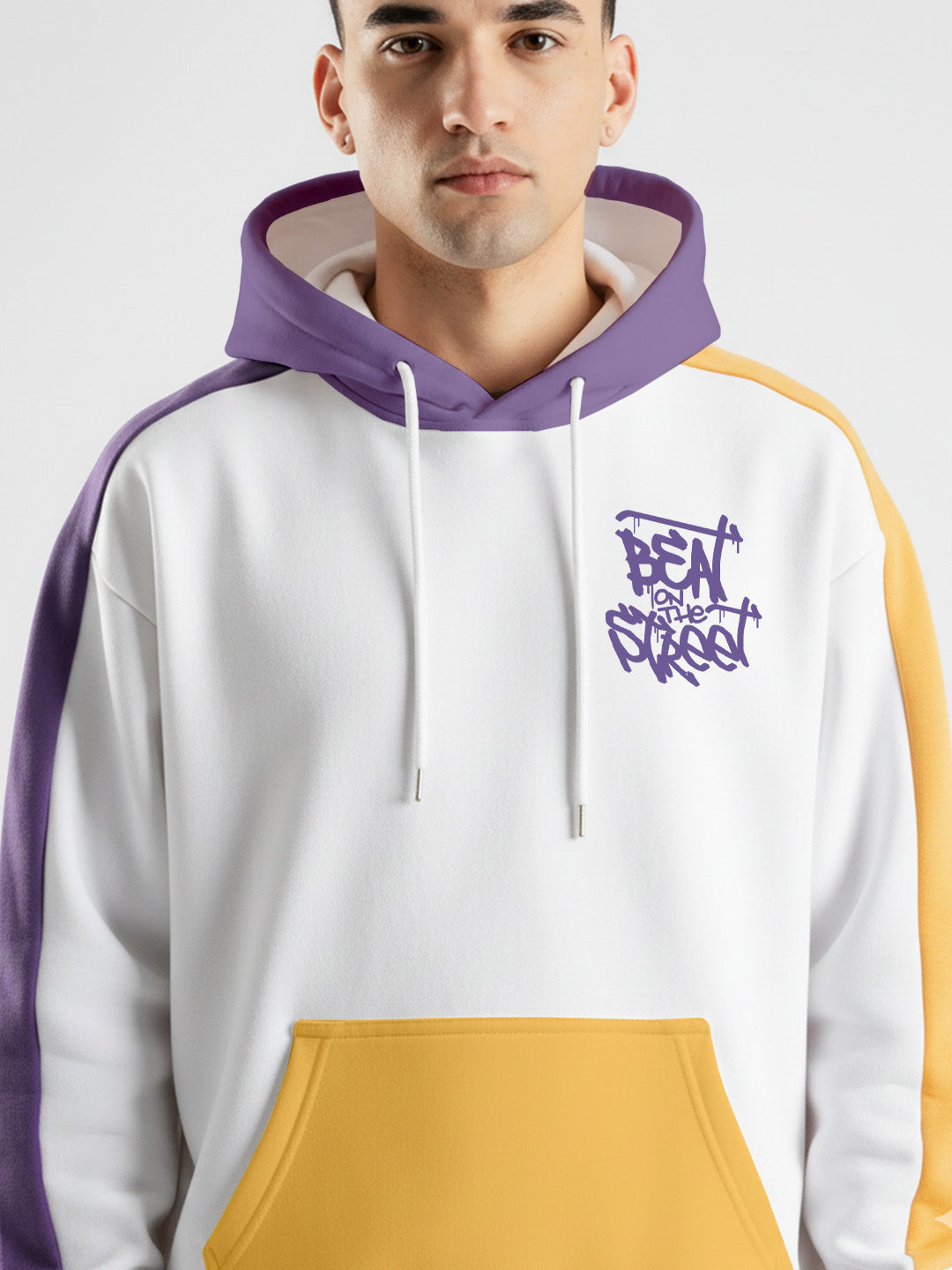 Beat On The Street Oversized Hoodie - White, Purple & Yellow