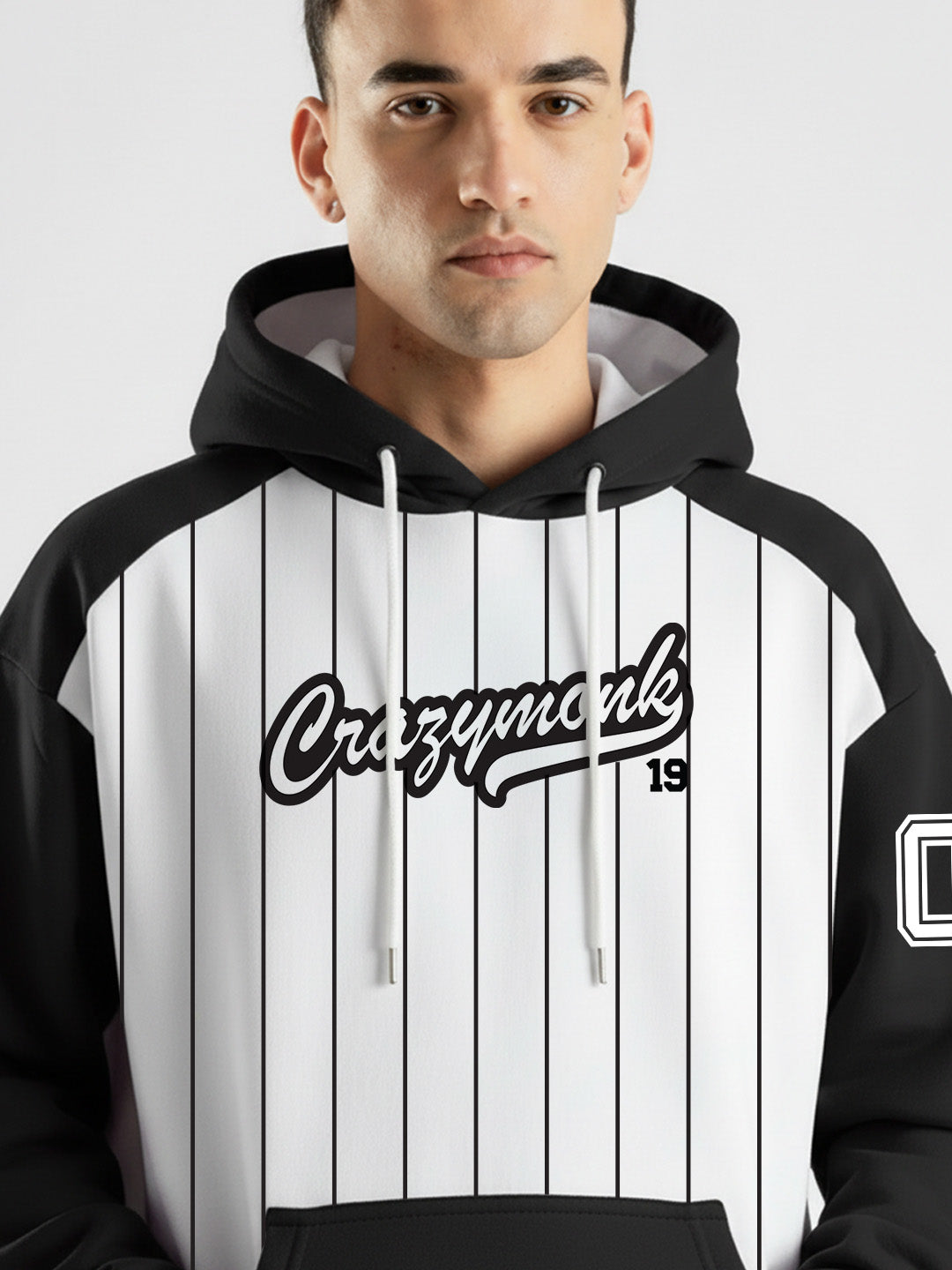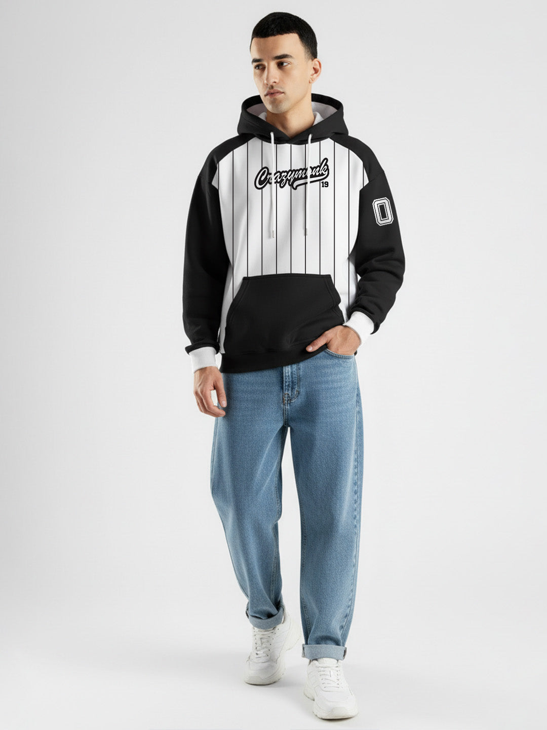 Crazymonk Base Ball Oversized Hoodie - Black & White