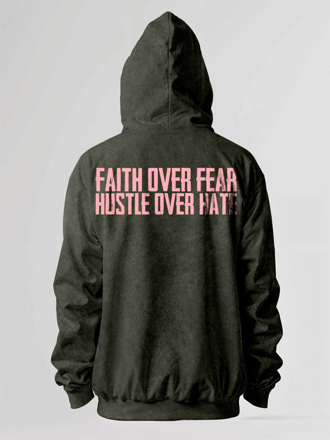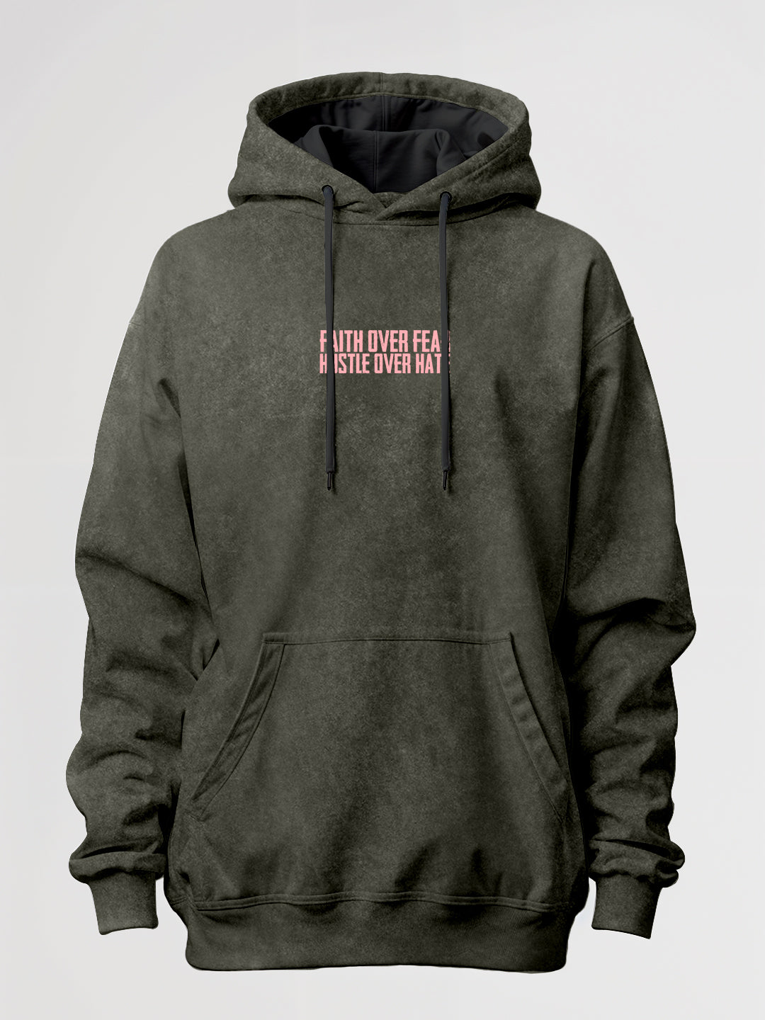 Faith Over Fear Hustle Over Hater Acid Wash Oversized Hoodie - Olive Green
