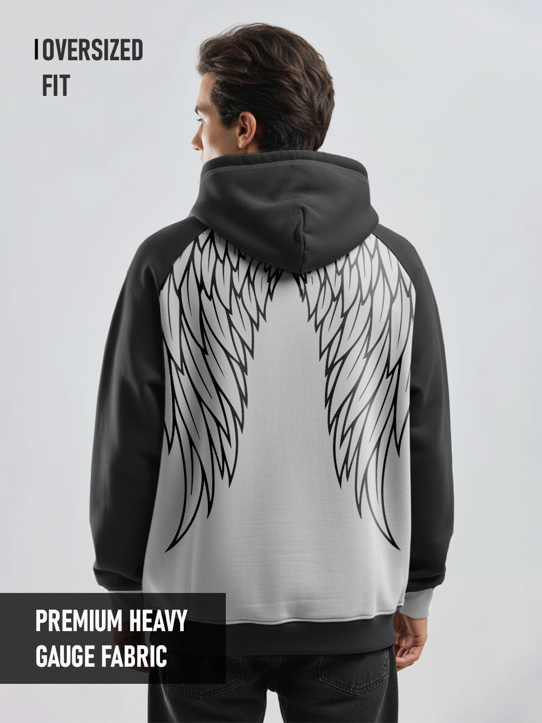 Fallen Angel Oversized Hoodie - LT.Grey & Black
