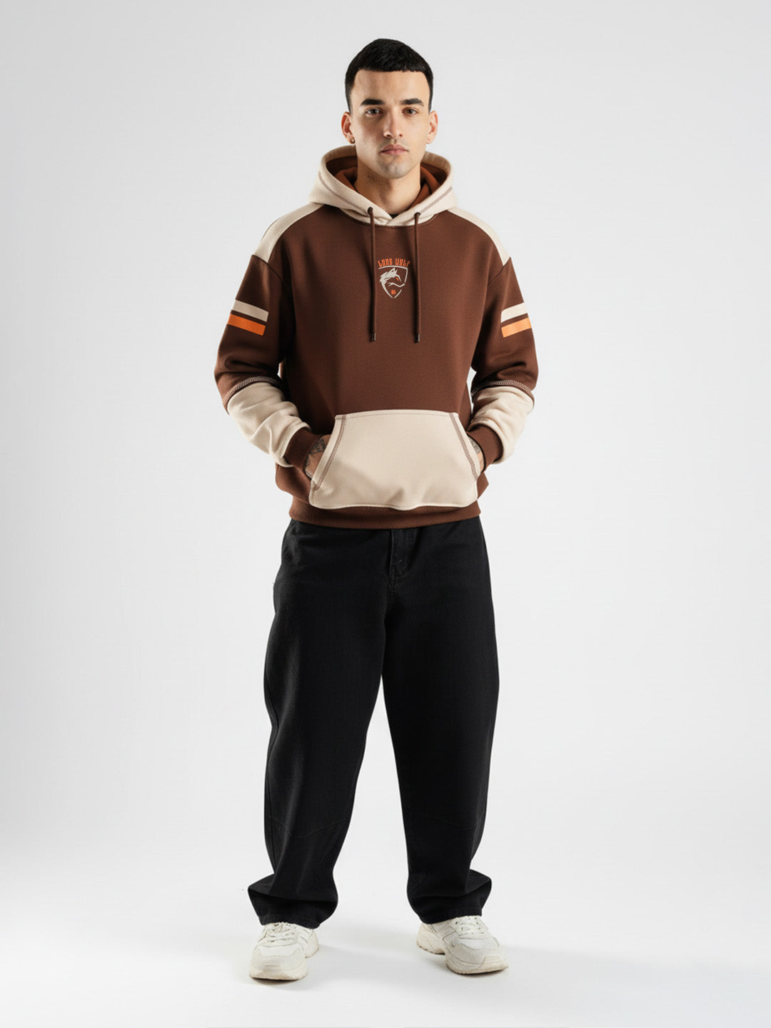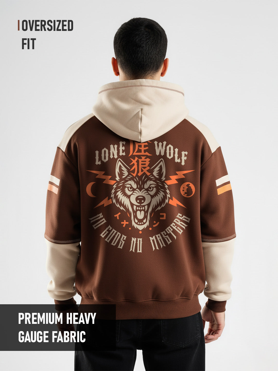 Lone Wolf Oversized Hoodie - Brown & Beige