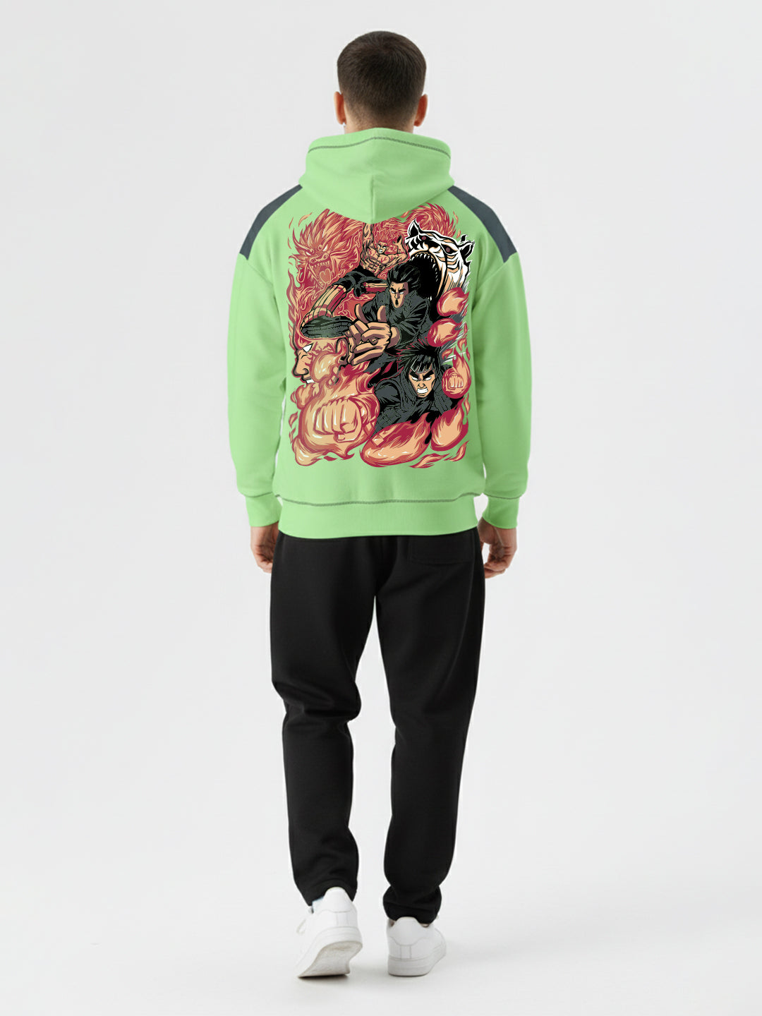 Might Guy Oversized Hoodie - Pista Green & Grey