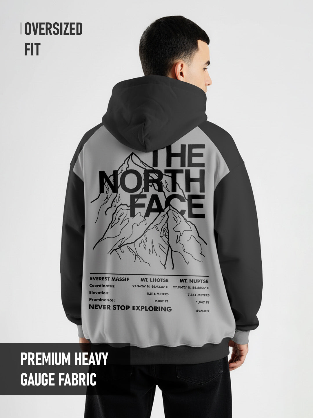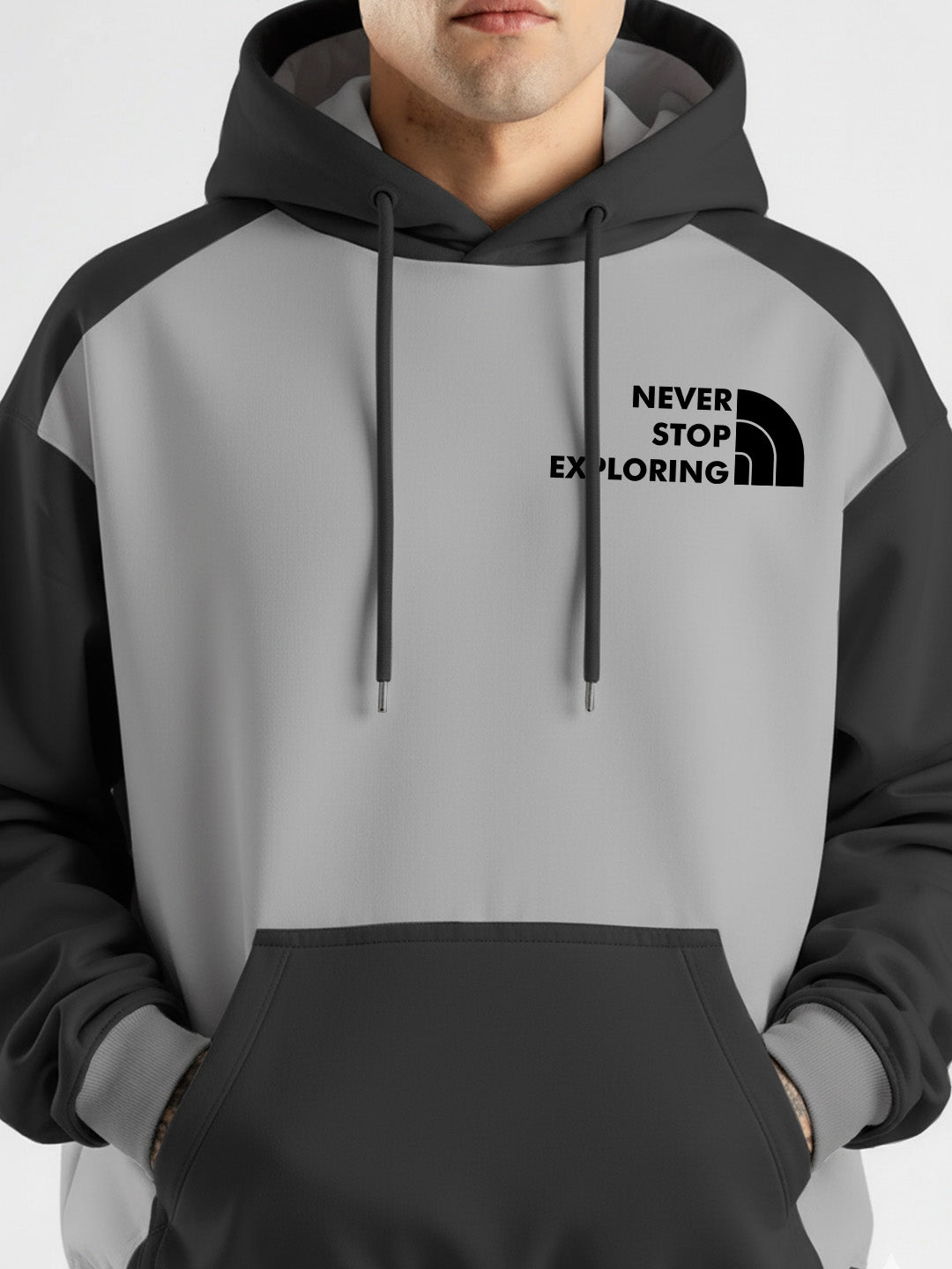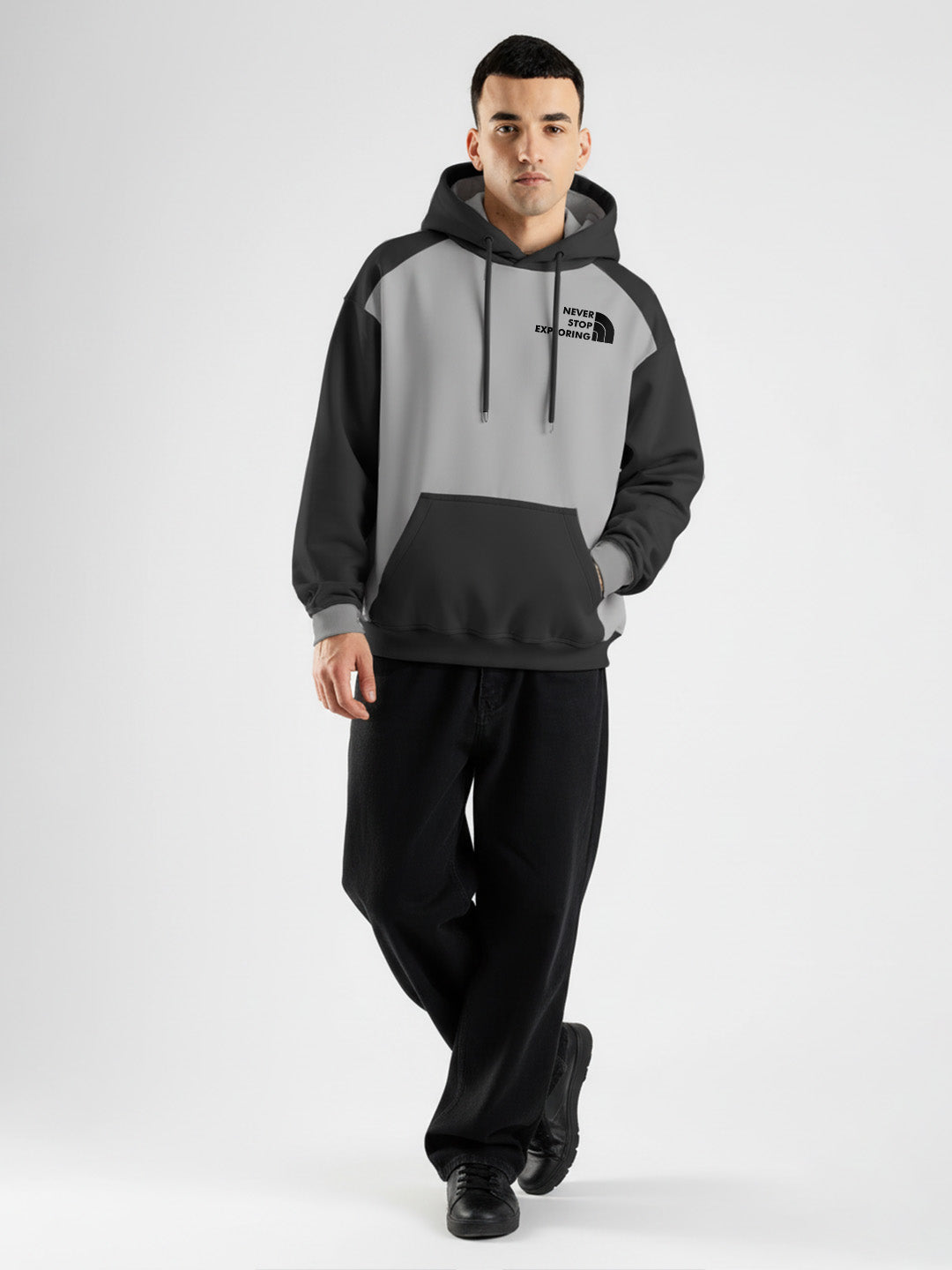 Never Stop Exploring Oversized Hoodie - LT.Grey & Black