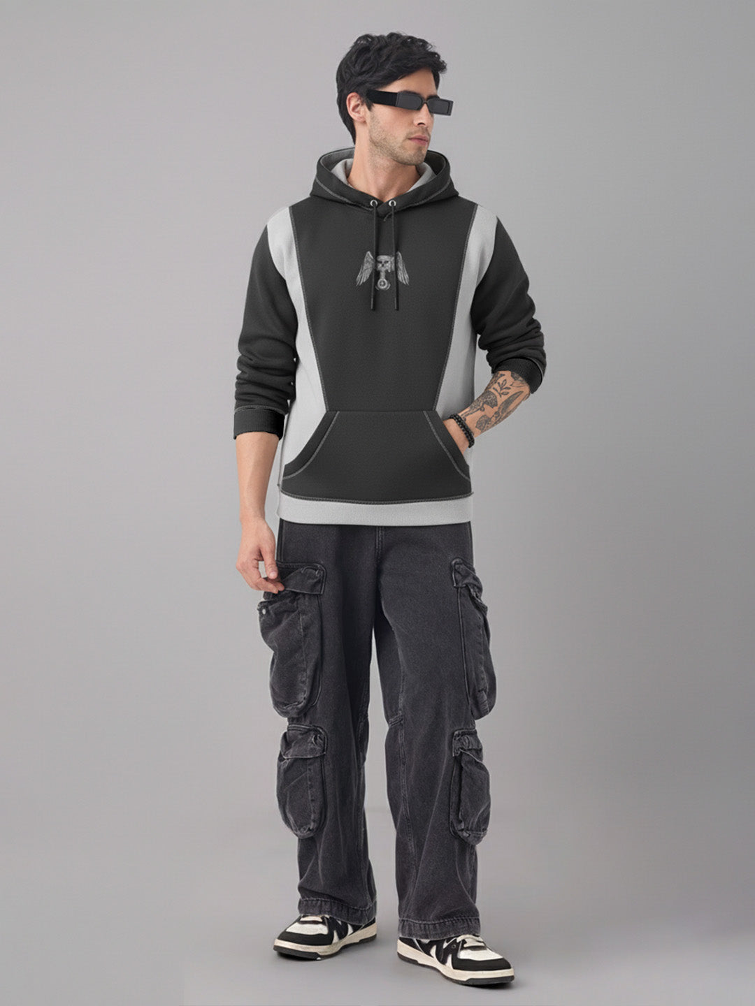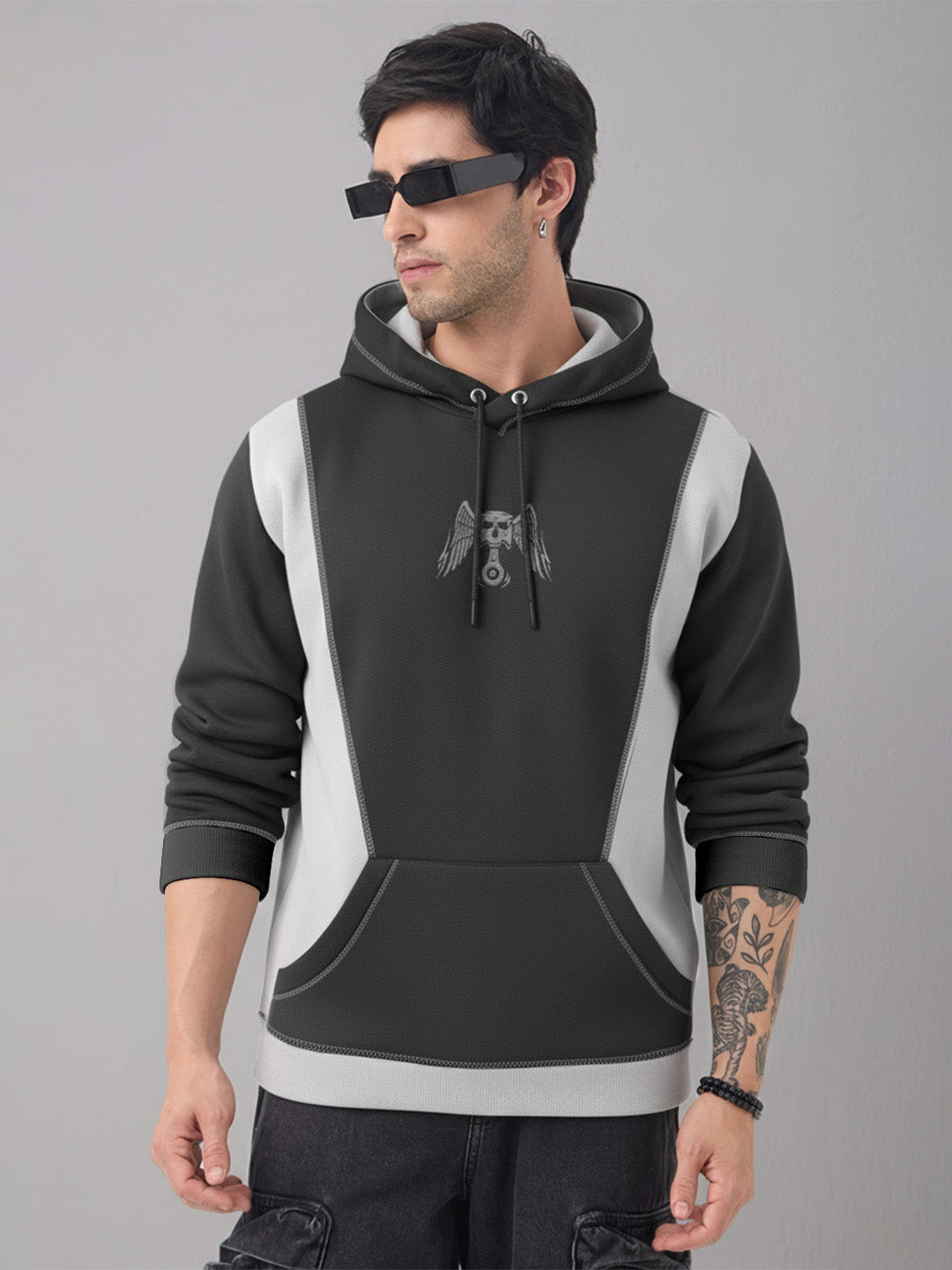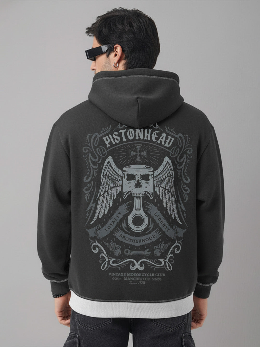 Piston Head Oversized Hoodie - Steel Grey & Black