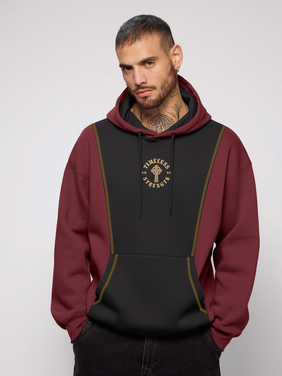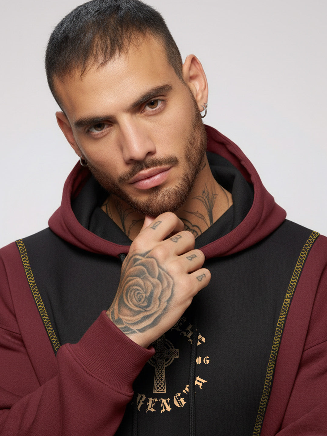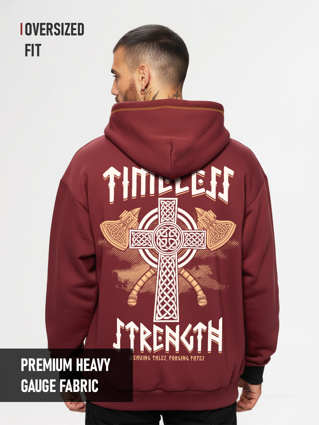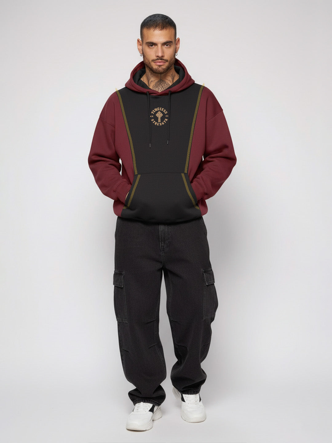 Timeless Strength Oversized Hoodie - Maroon & Black