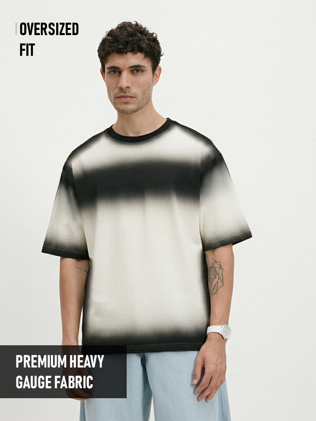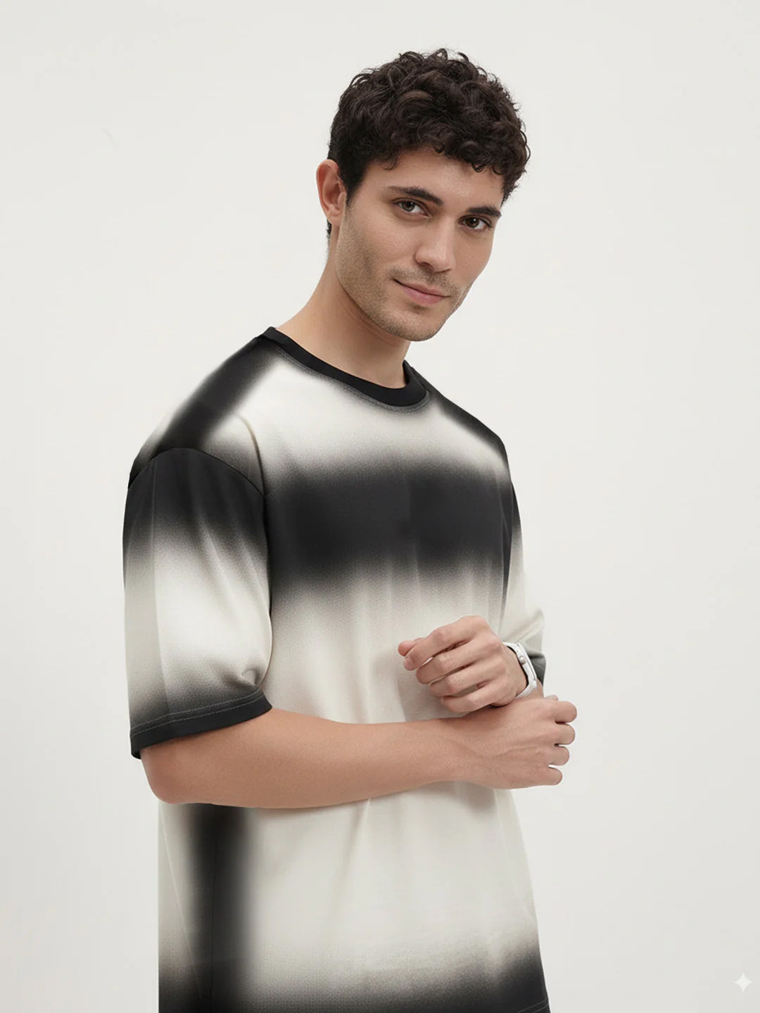 Plain - Obsidian Haze Spray Effect Oversized T-Shirt - Off White