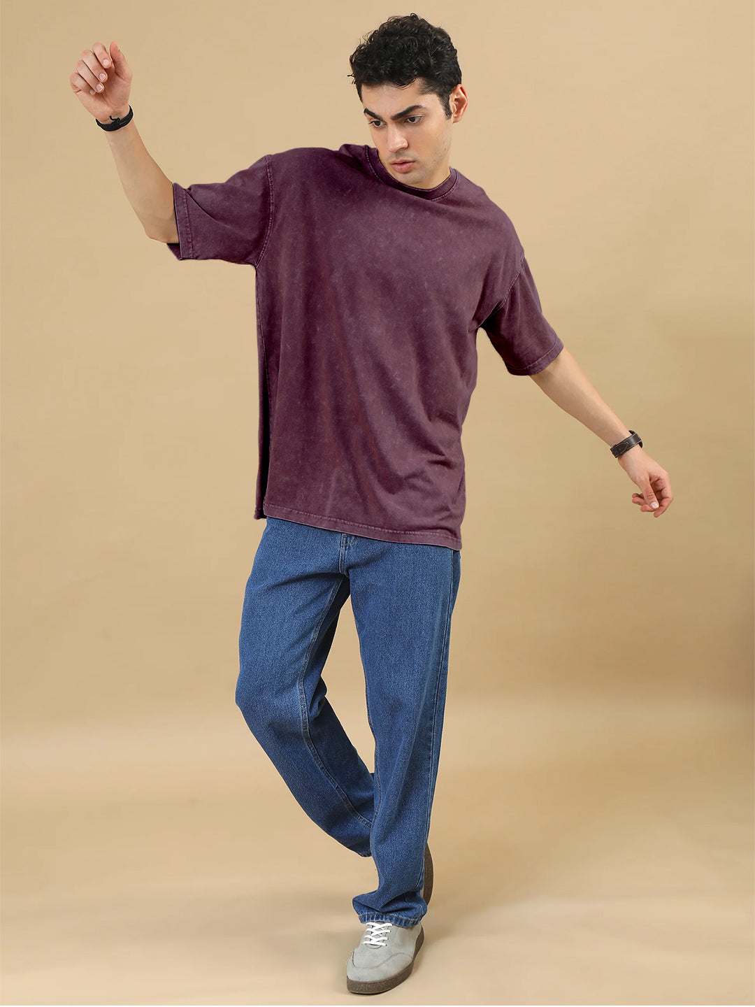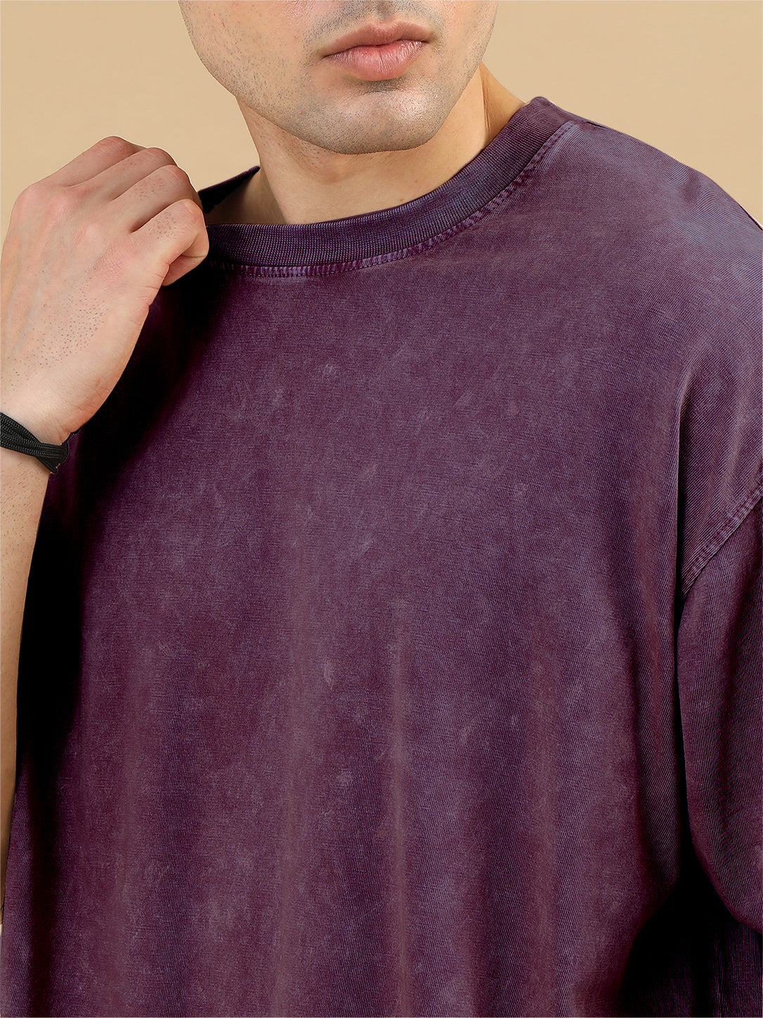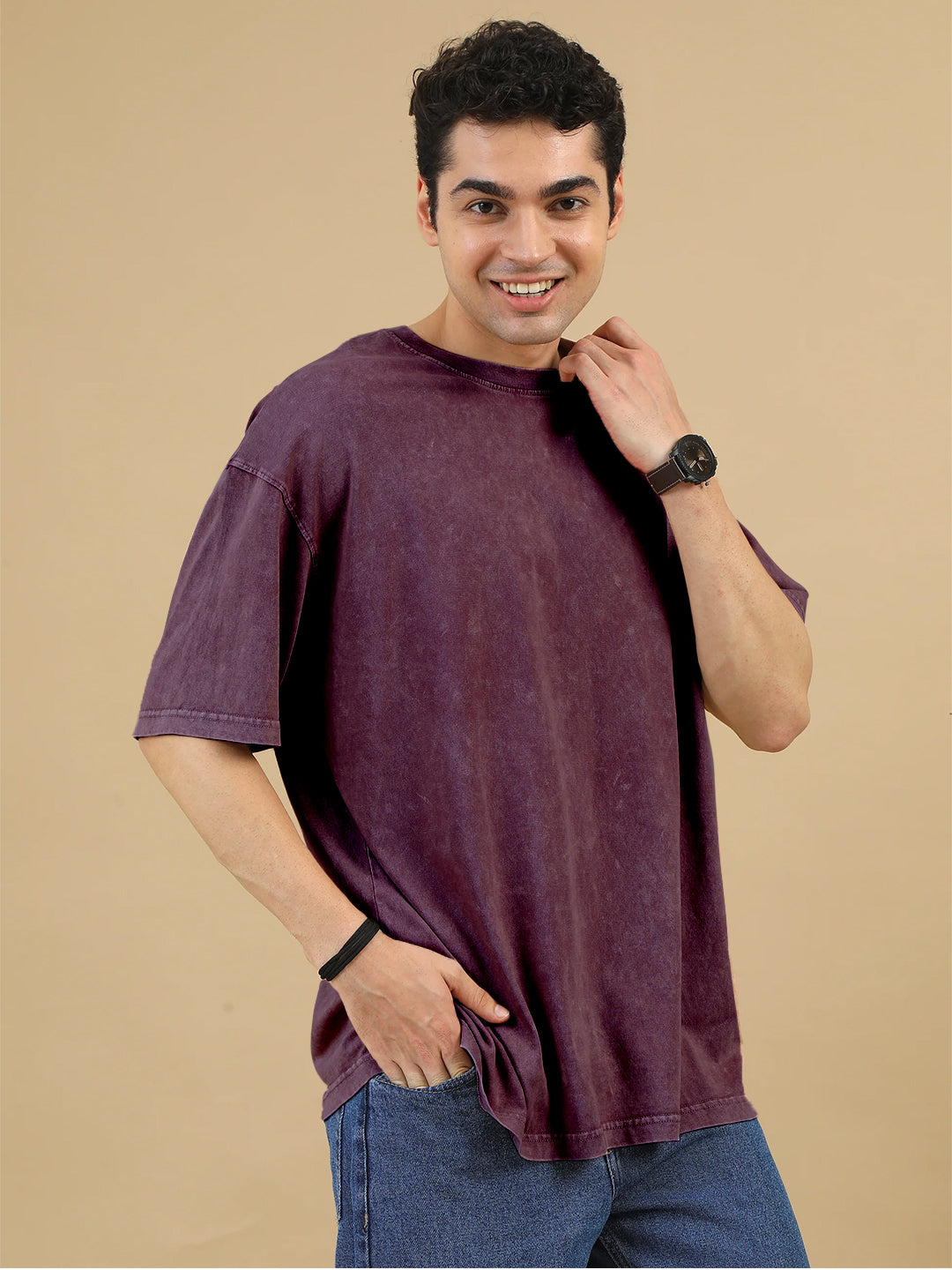 Plain Acid Wash Oversized T-Shirt - Grapeade