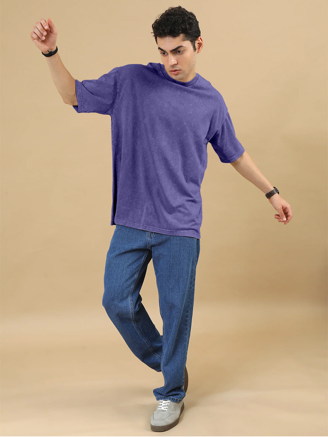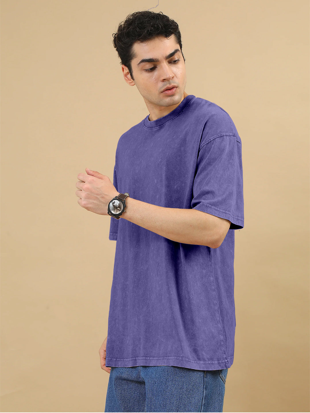 Plain Acid Wash Oversized T-Shirt - Purple