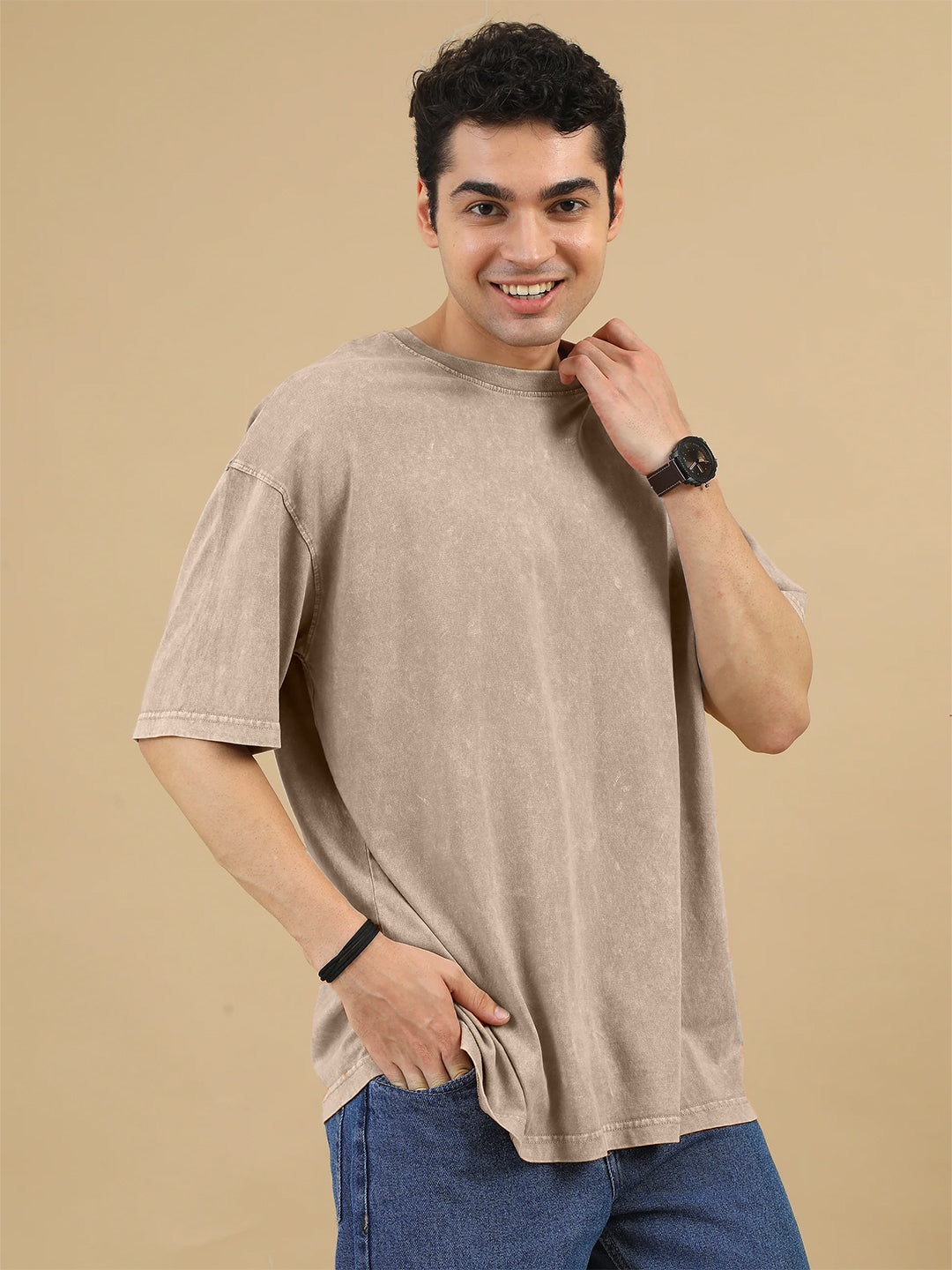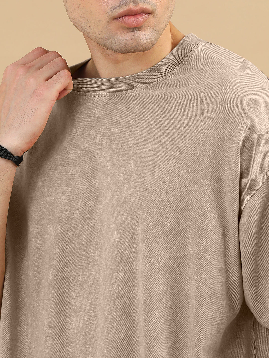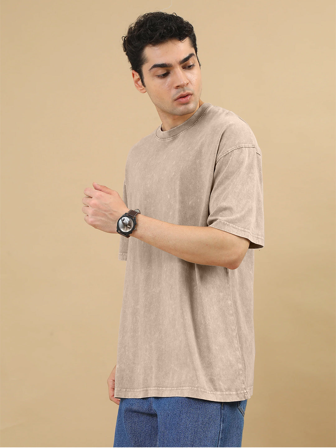 Plain Acid Wash Oversized T-Shirt - Quick Sand