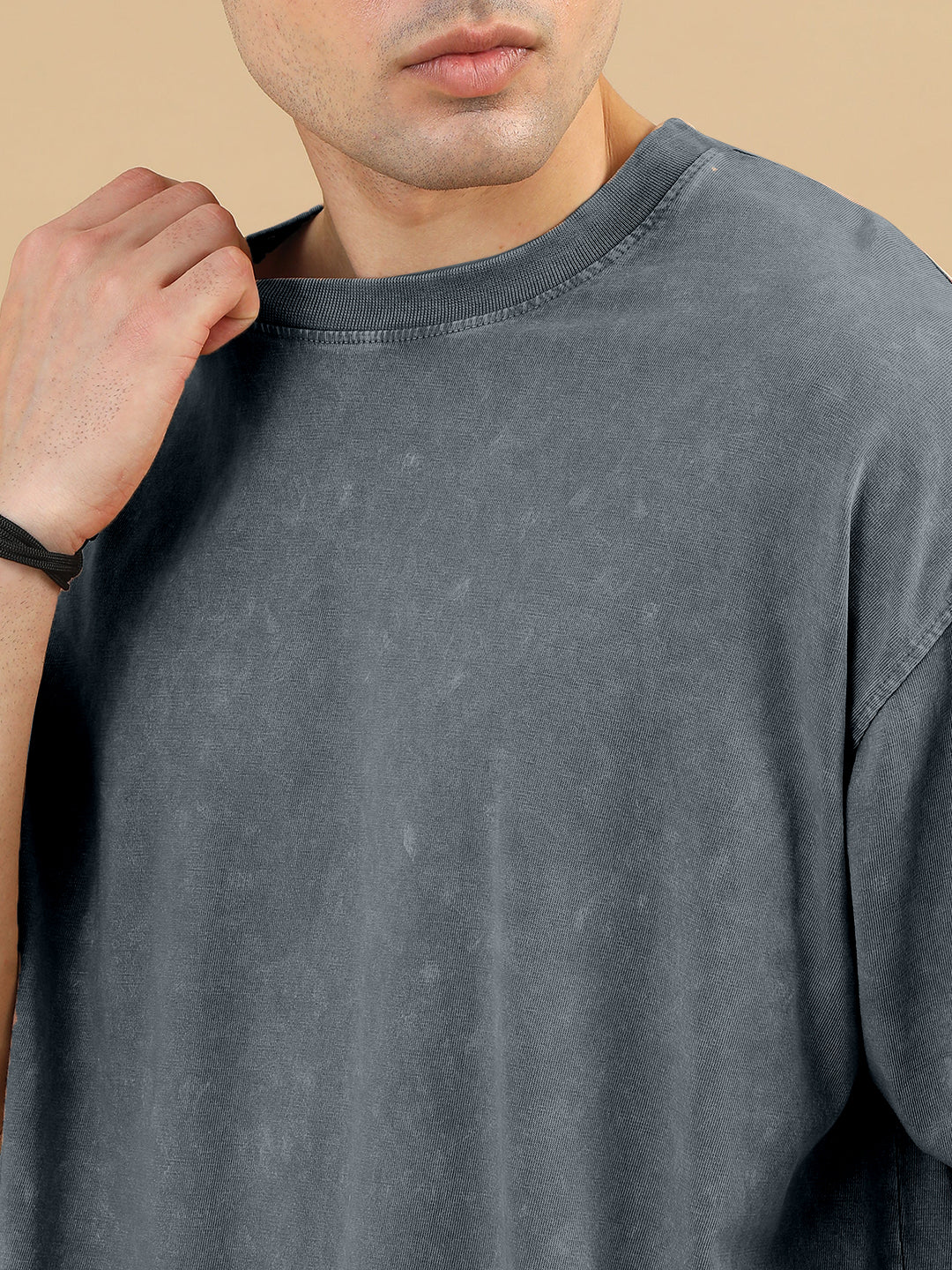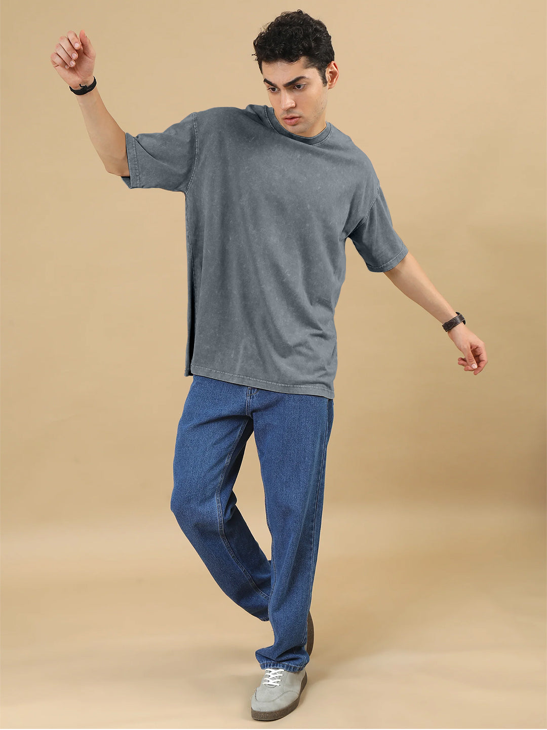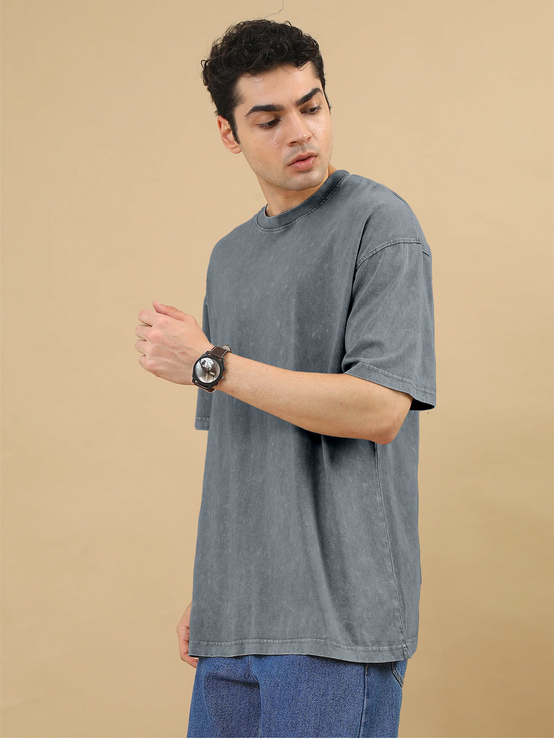 Plain Acid Wash Oversized T-Shirt - Steel Grey