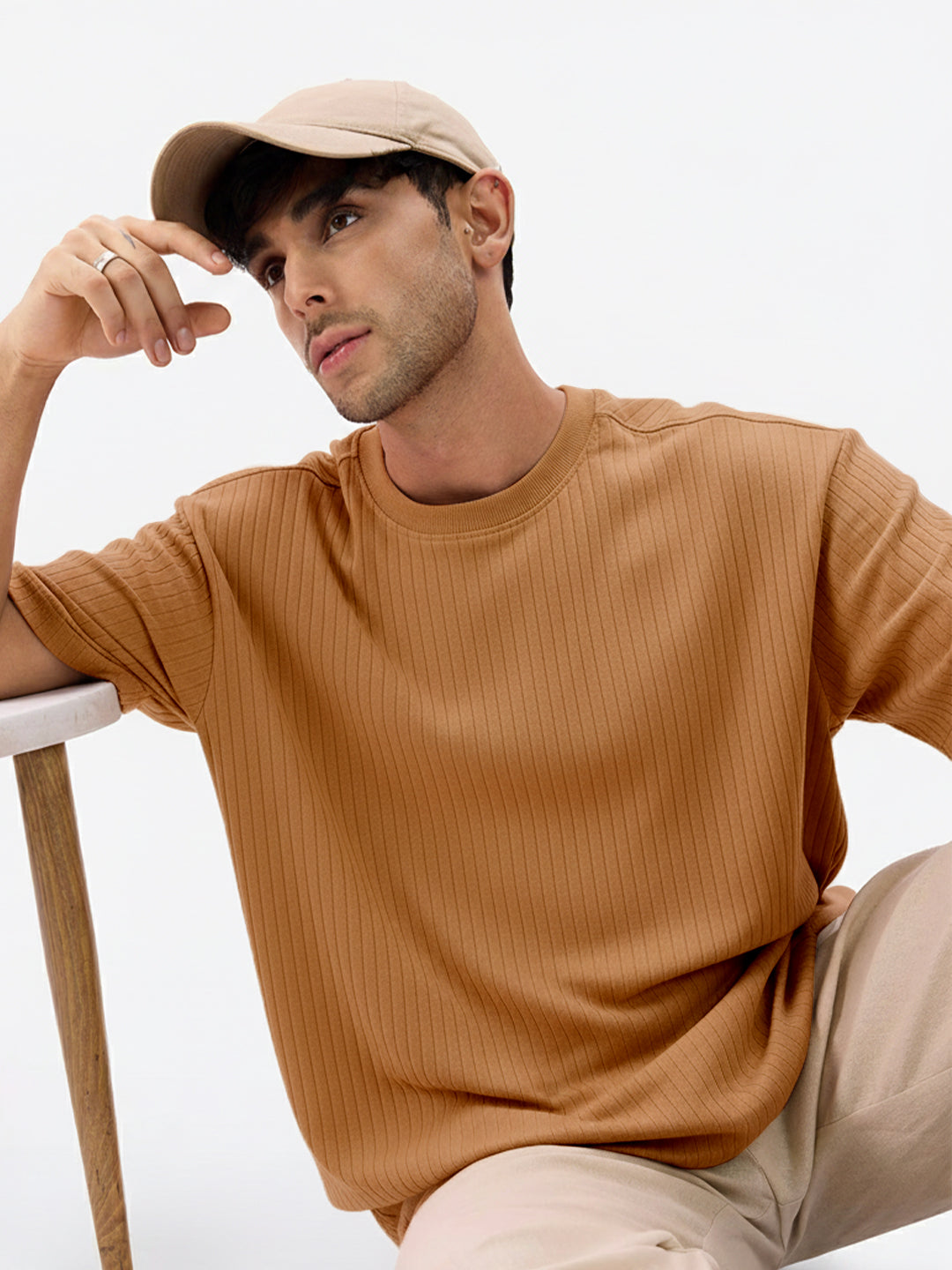 Sunday Sandstone Textured Oversized T-Shirt - Sandal
