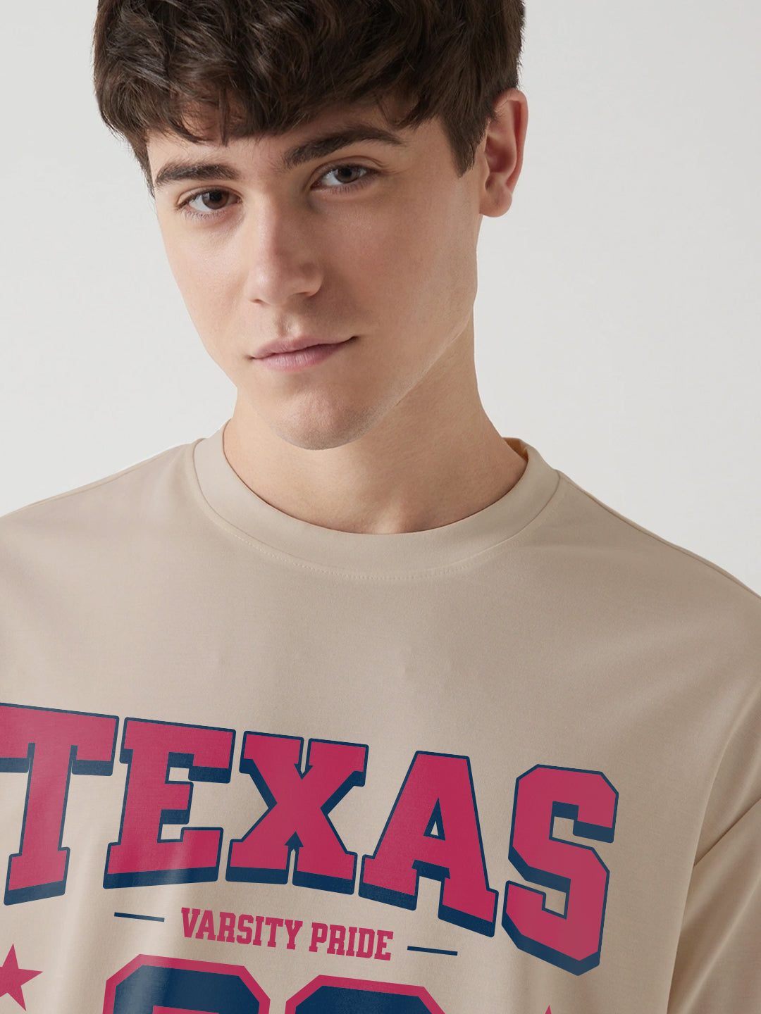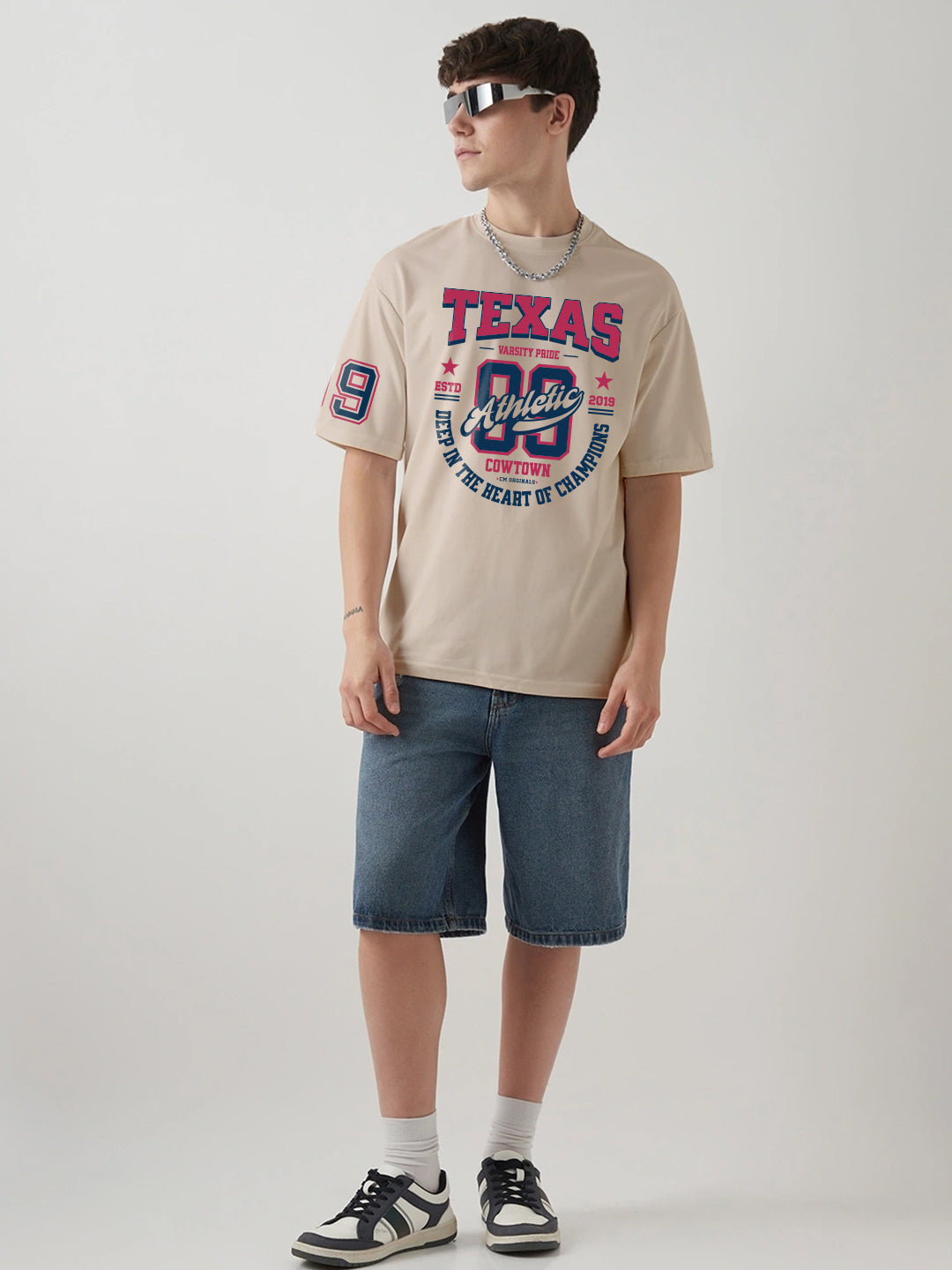 Texas Champions Graphic Printed Oversized T-Shirt - Cream