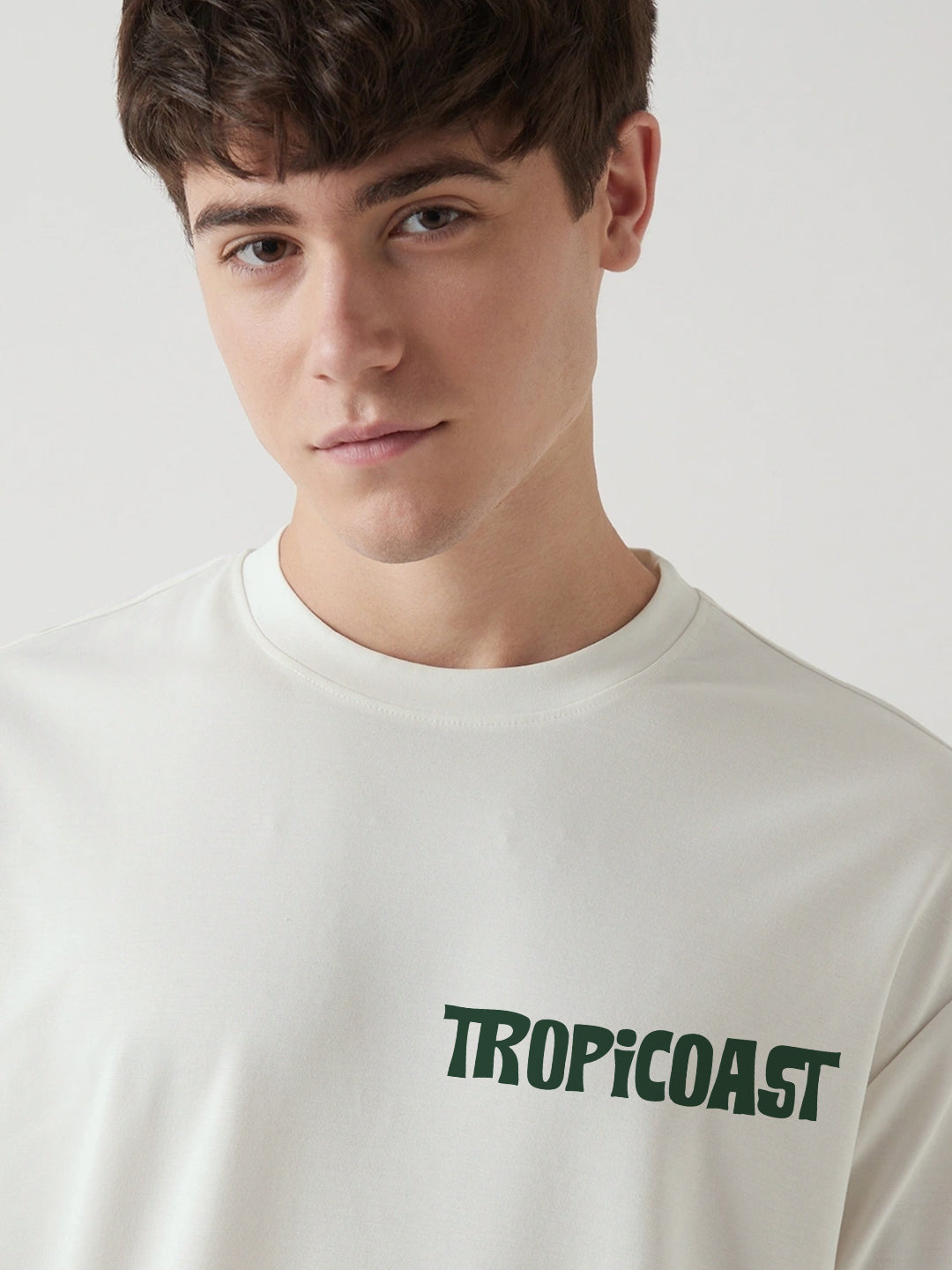 Tropicoast Graphic Printed Oversized T-Shirt - Off White