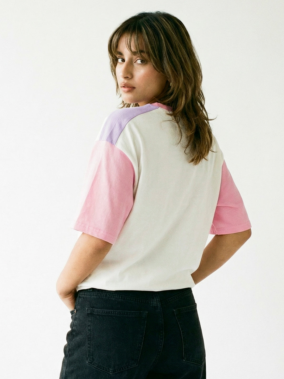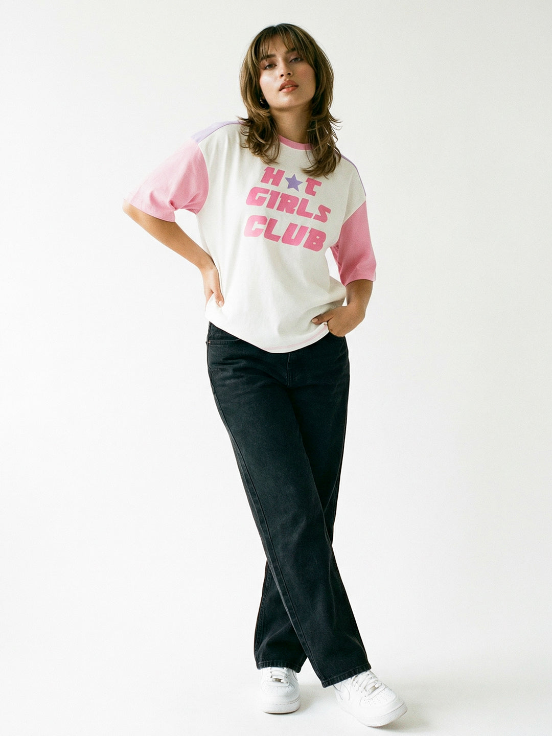 Hot Girls Club Women Oversized T-Shirt - White/Lilac, Rib-Pink