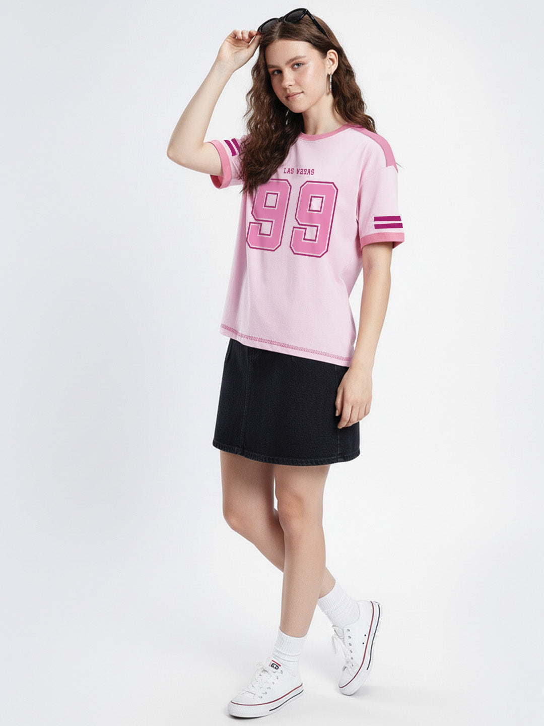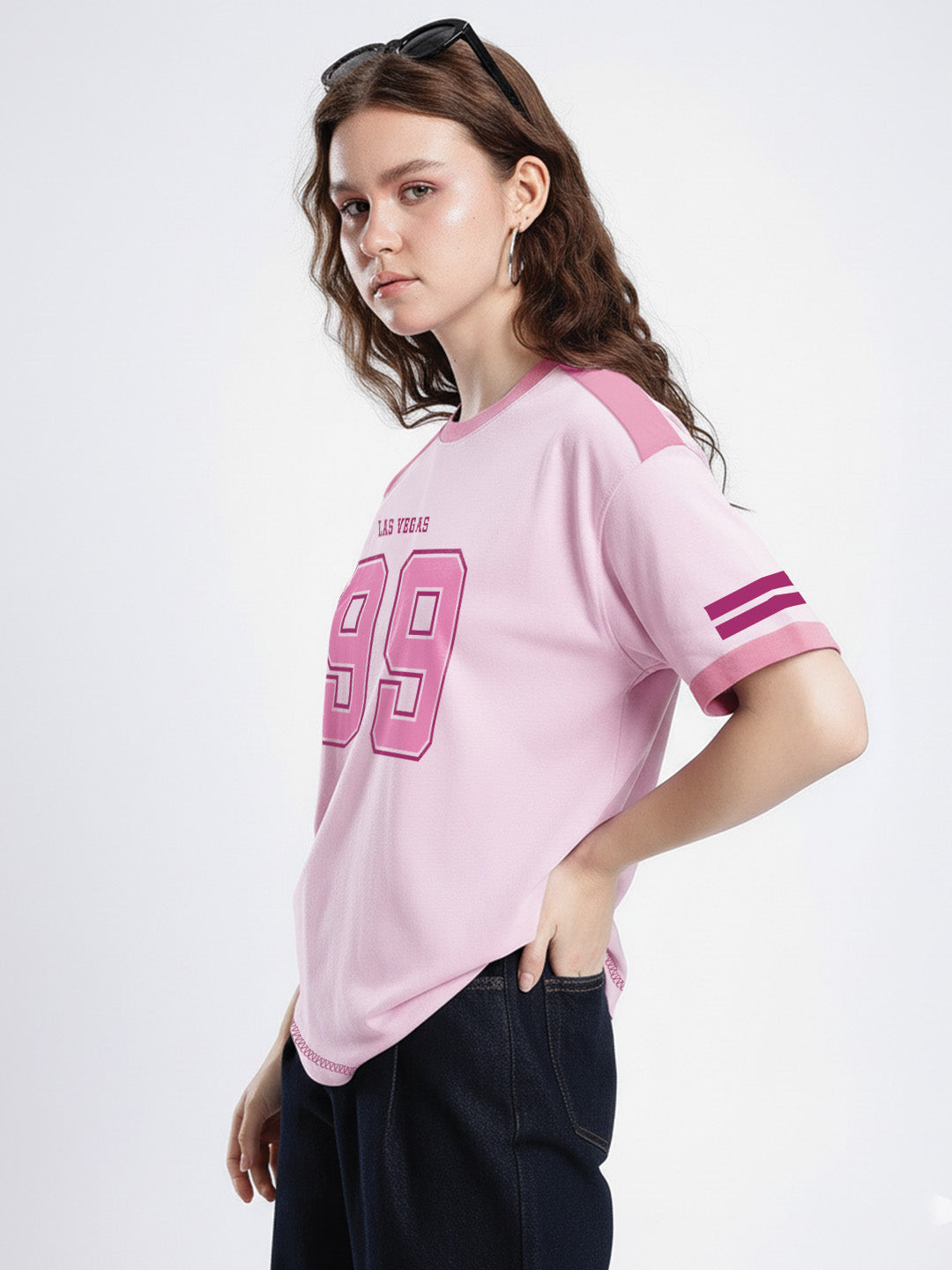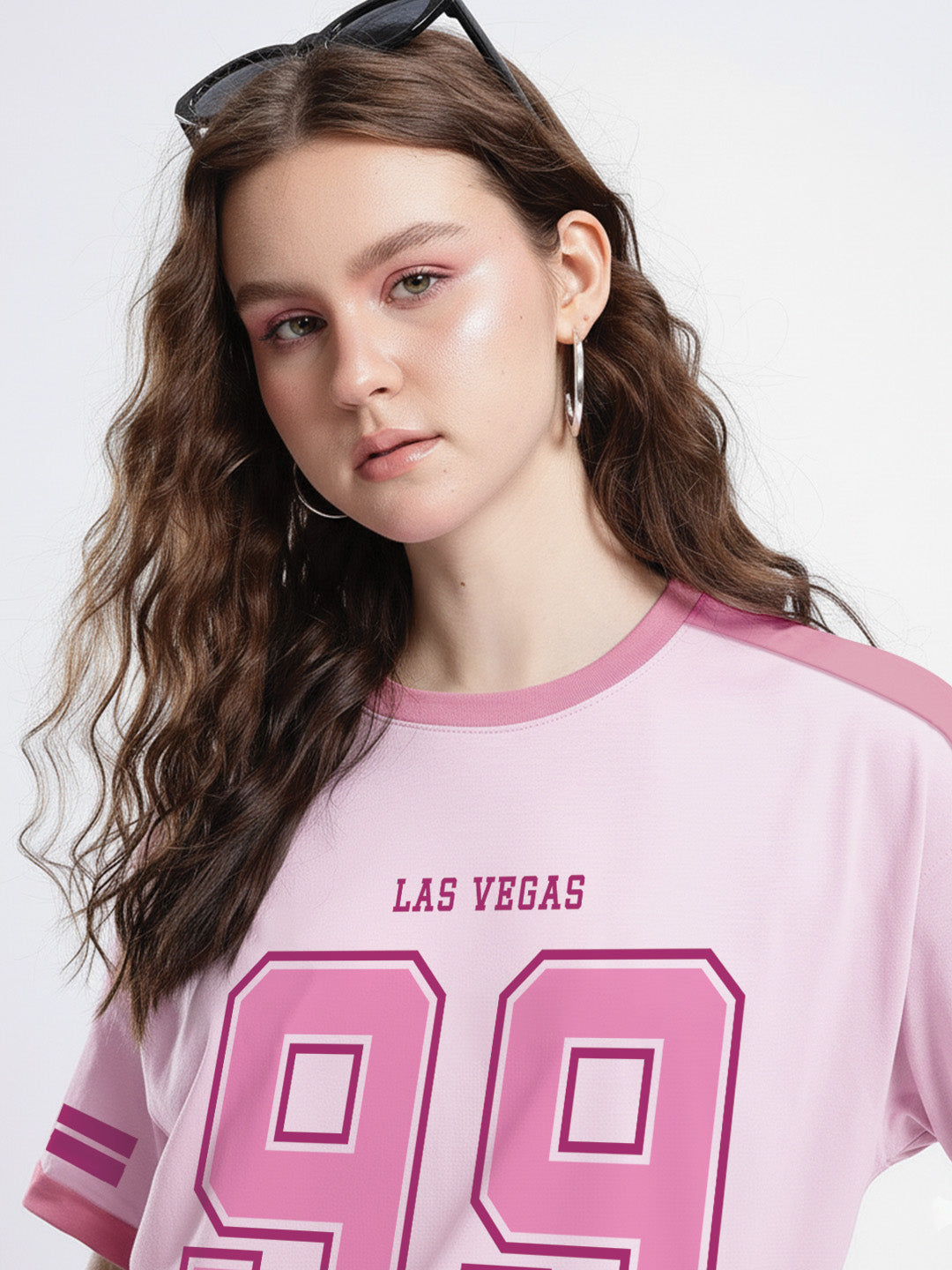 Las Vegas 99 Women Oversized T-Shirt - Pink - Sleeve Stripes