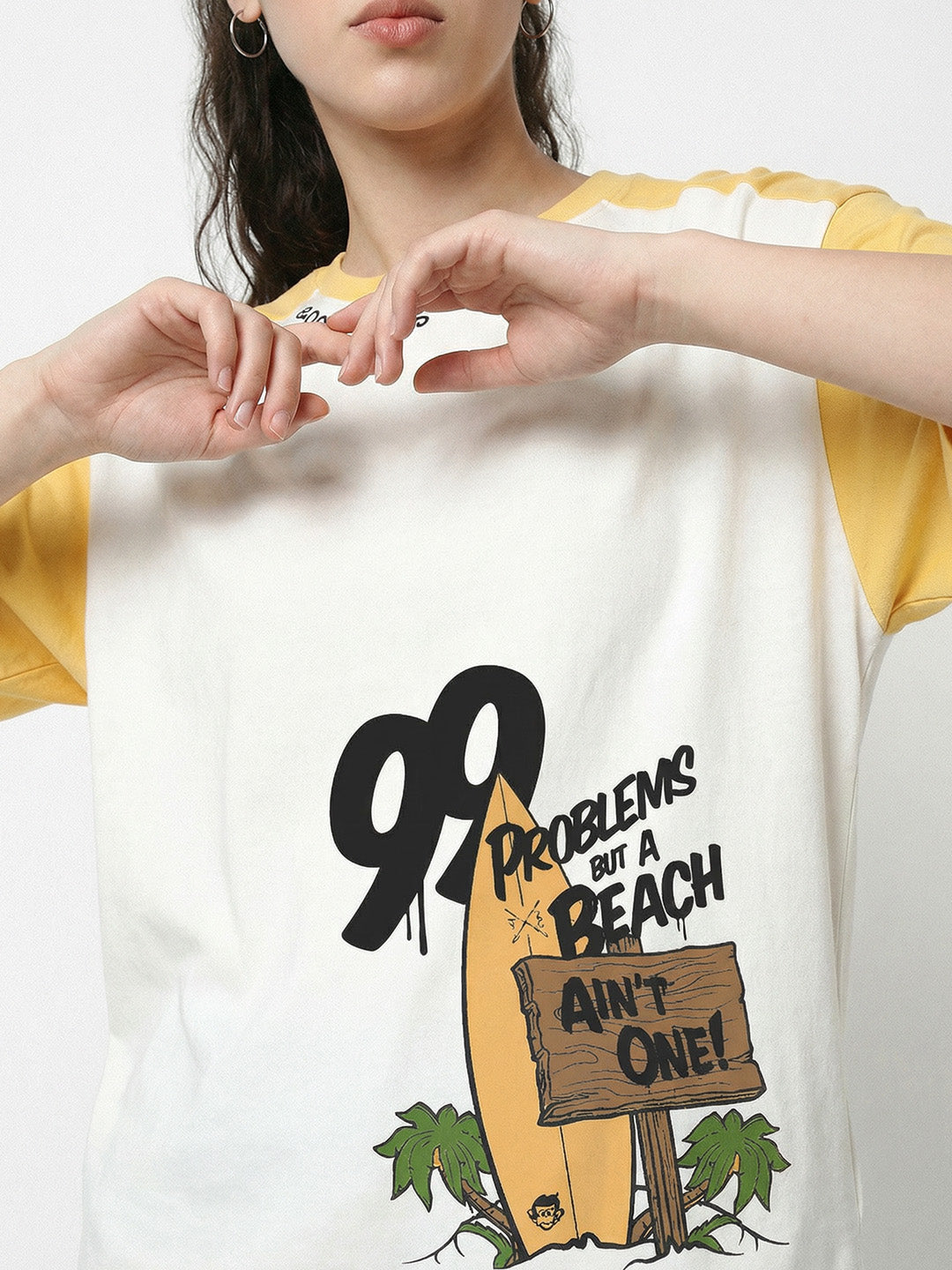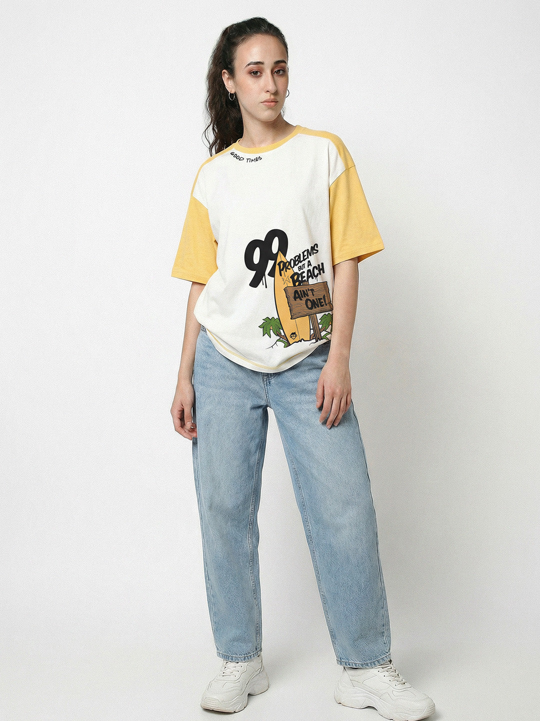 Good Times Women Oversized T-Shirt - Off White & Yellow
